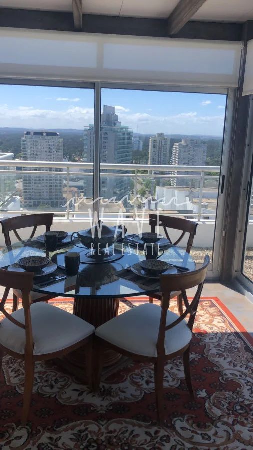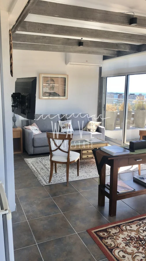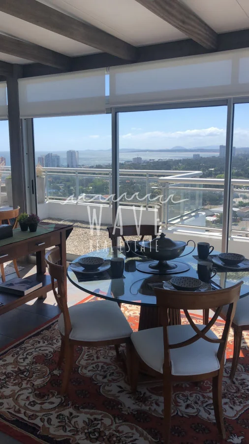 La unidad es un Pent House duplex, ofreciendo impactantes vistas a la península y el mar. Con una orientación este y oeste que garantiza luminosidad y calidez durante todo el día, esta unidad cuenta en el primer piso con gran living comedor, terraza, con las mejores vistas al océano, cocina definida, lavadero, 2 dormitorios y 2 baños, incluyendo una suite principal, y un piso superior con barbacoa, un segundo living y comedor con sofá cama, ofreciendo otro espacio independiente para huéspedes u oficiando de tercer dormitorio, y gran terraza con increíble vista.