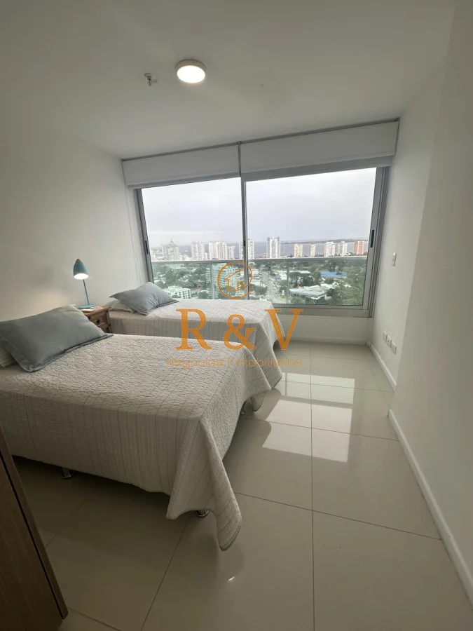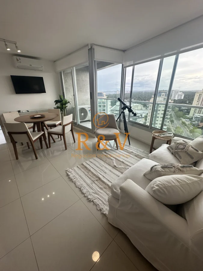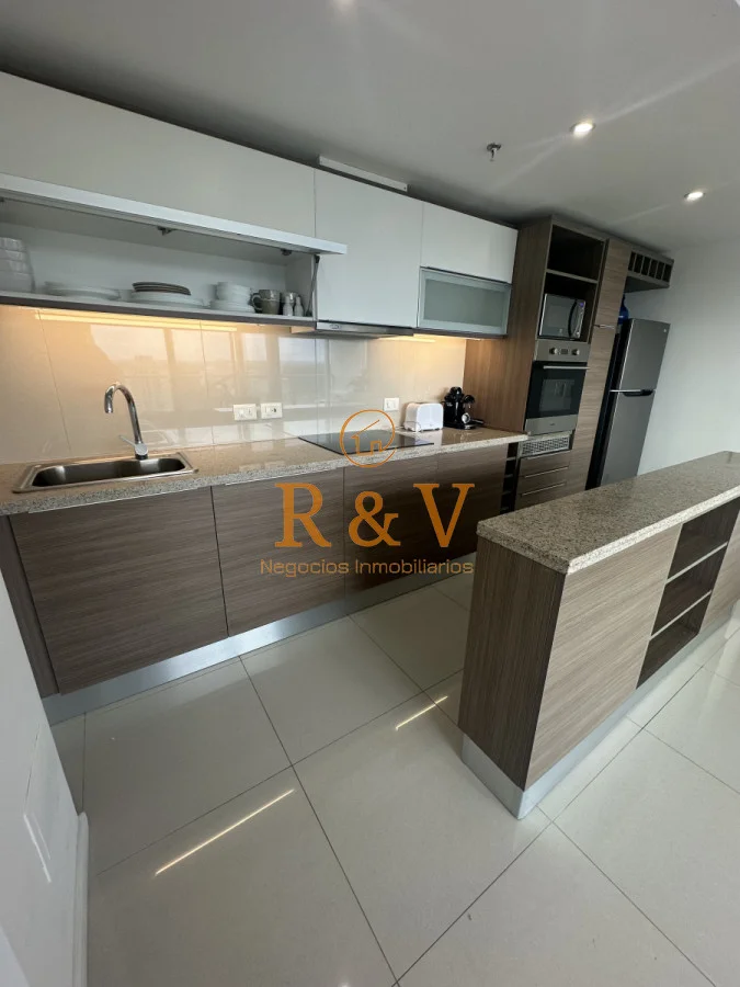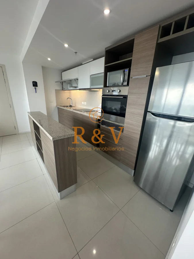Living comedor con cocina integrada, 2 dormitorios (1 suite), 2 baños.