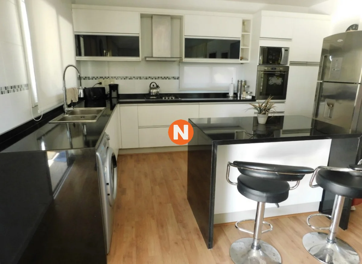 Amplia cocina integrada completamente equipada con electrodomésticos de última generación desayunador y ventanales que permiten el ingreso de luz natural.