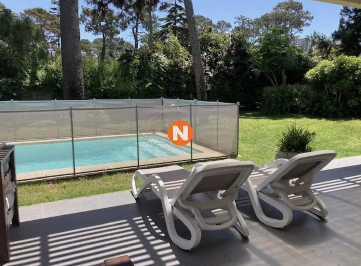 Jardín con vista despejada y verde desde cualquier rincón Aquí se ubica la pérgola con el parrillero con living exterior y excepcional vista a la piscina y atardeceres excepcionales.