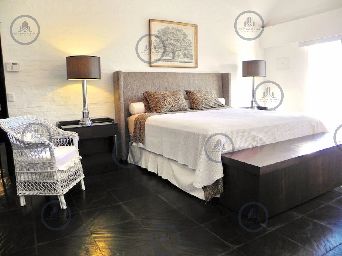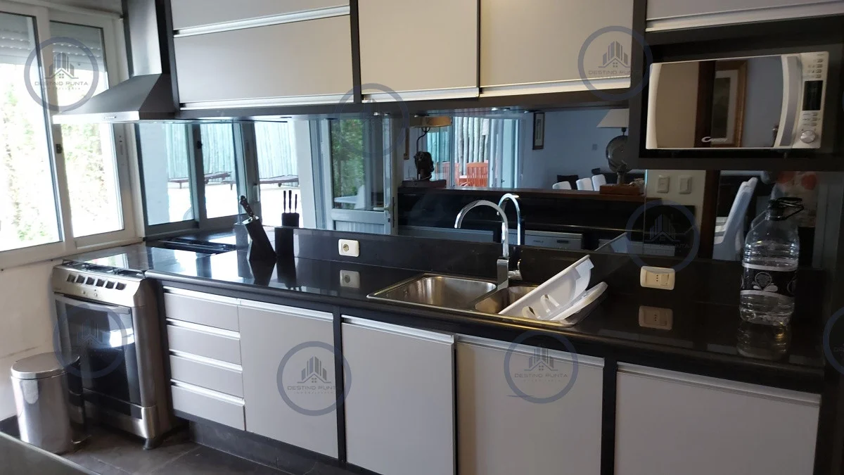 Cuenta con seis dormitorios, cuatro de ellos en suite y casa de huéspedes con otro dormitorio. Gran living comedor, con muy buena luz natural. Amplia cocina definida, bien equipada. Con AC en todos los ambientes.
