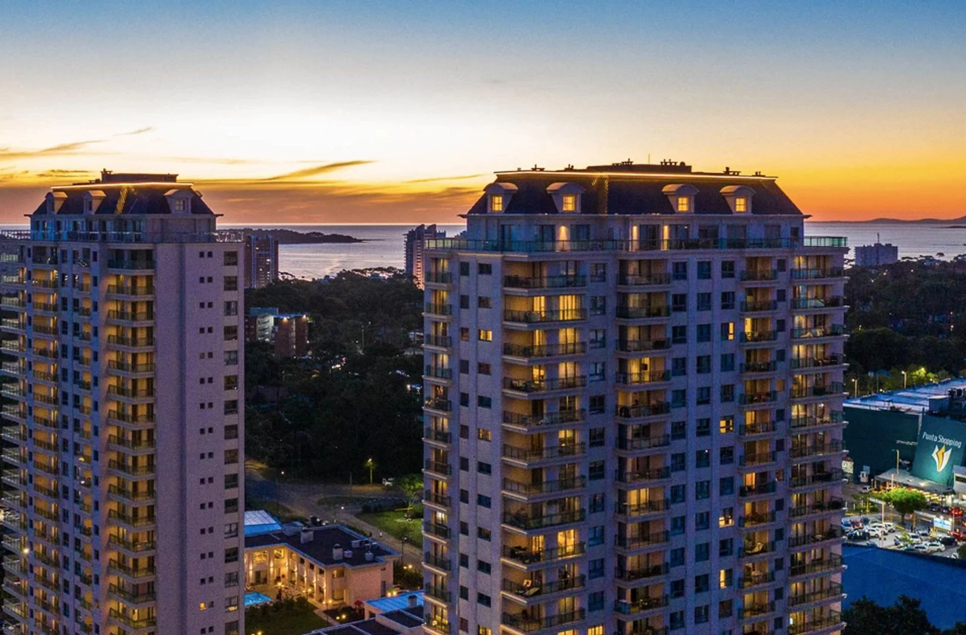 Apartamento en alquiler anual Monoambiente en torre de alta categoría, ubicada en Av. Roosevelt y Av. Pedragosa Sierra, de estilo neoclásico francés, sobre terrenos de casi una hectárea, se localizan en el punto más estratégico de Punta del Este, en el District Design, a metros del Punta Shopping.