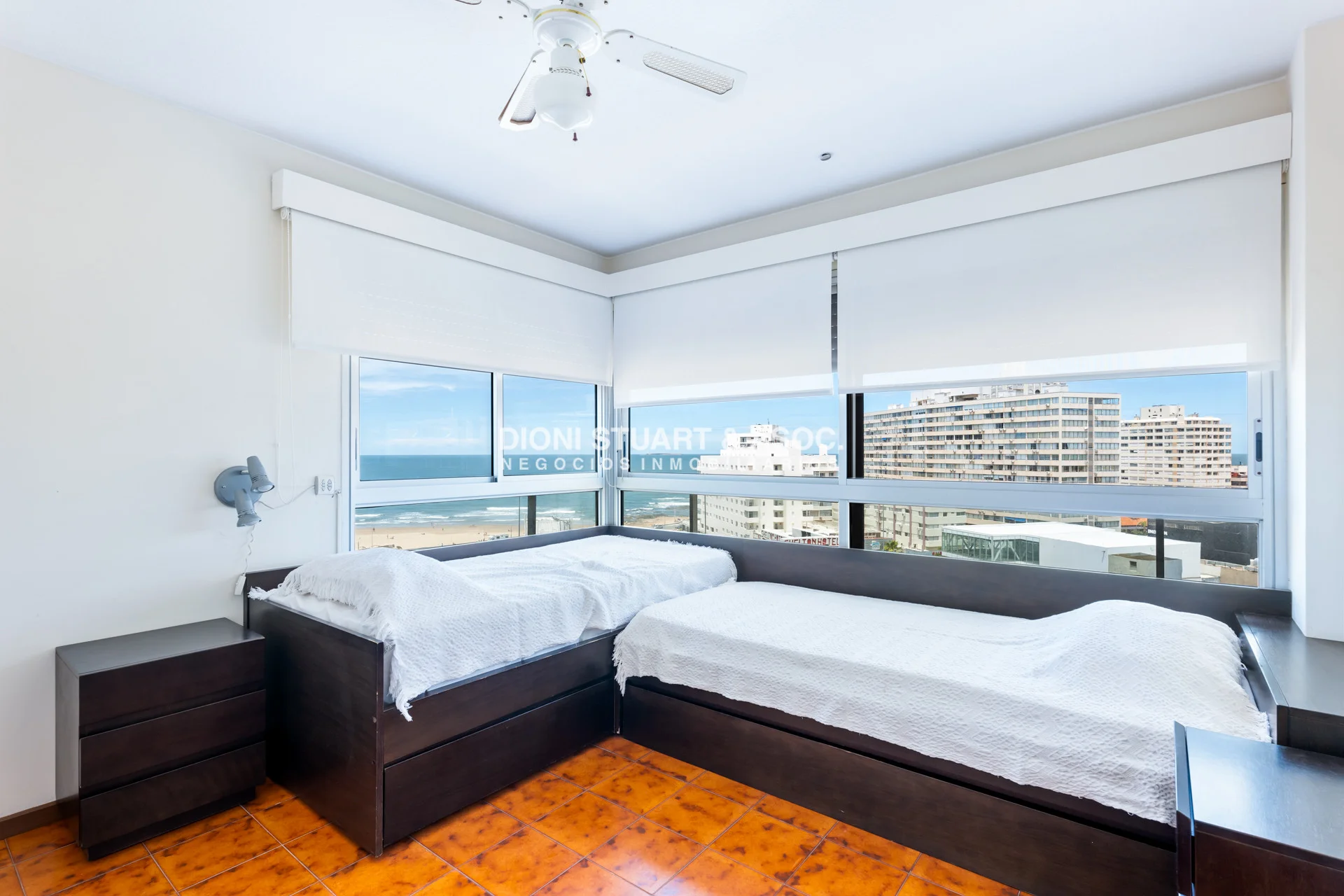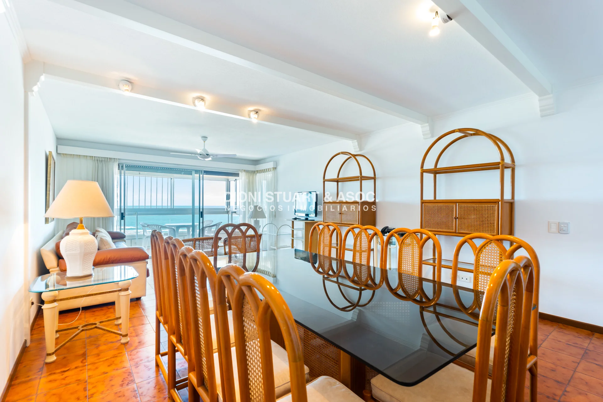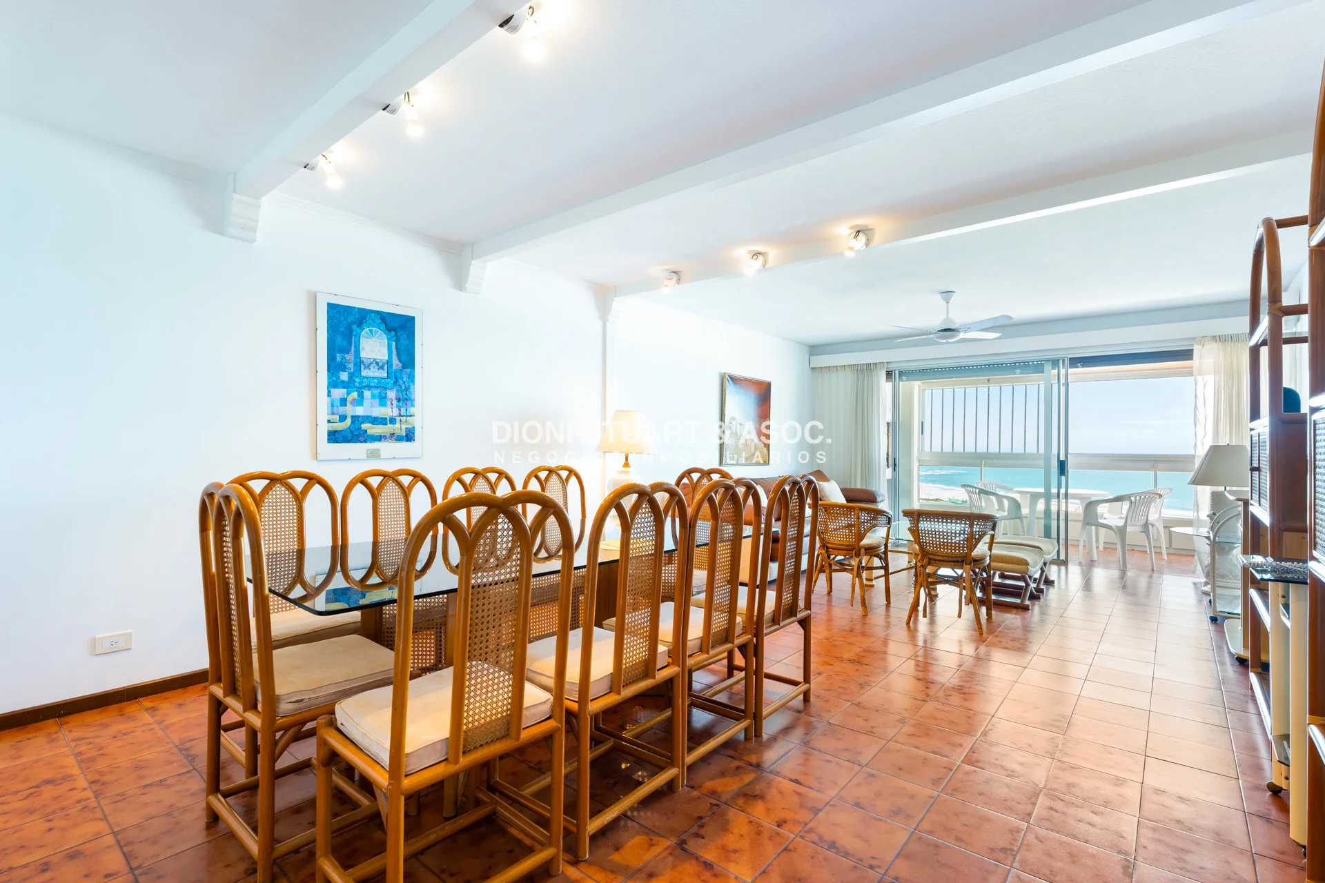 Espectacular apartamento en una ubicación inmejorable cerca de Gorlero y frente al mar en la Parada 1 Mansa. Con vista a la brava, esta unidad ofrece un amplio living-comedor con terraza cerrada, tres dormitorios y dos baños (1 en suite) y a demás, dependencia de servicio con baño. El edificio tiene servicio de playa en la mansa y brava, recepción 24hs, mucama diaria, gimnasio, play-room.