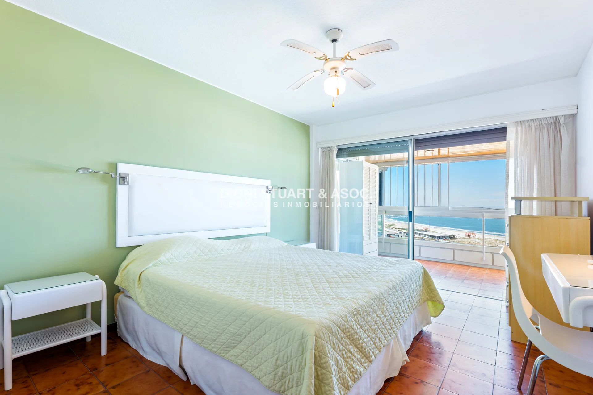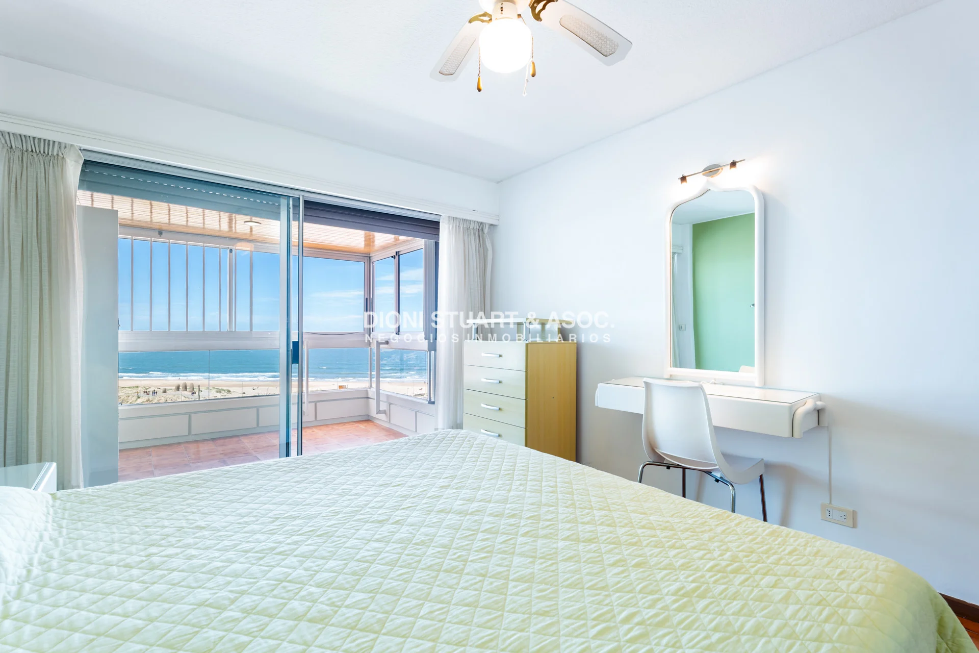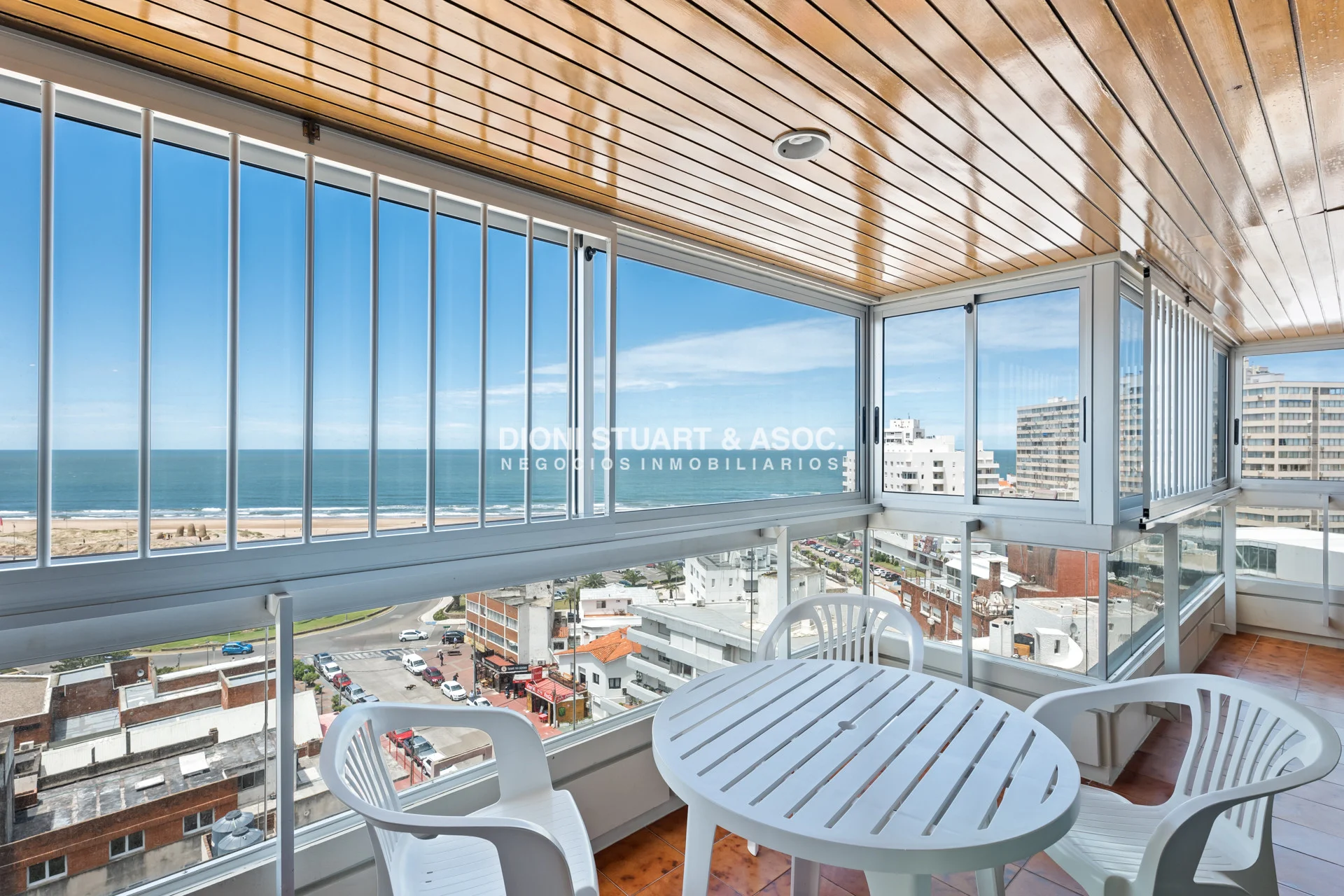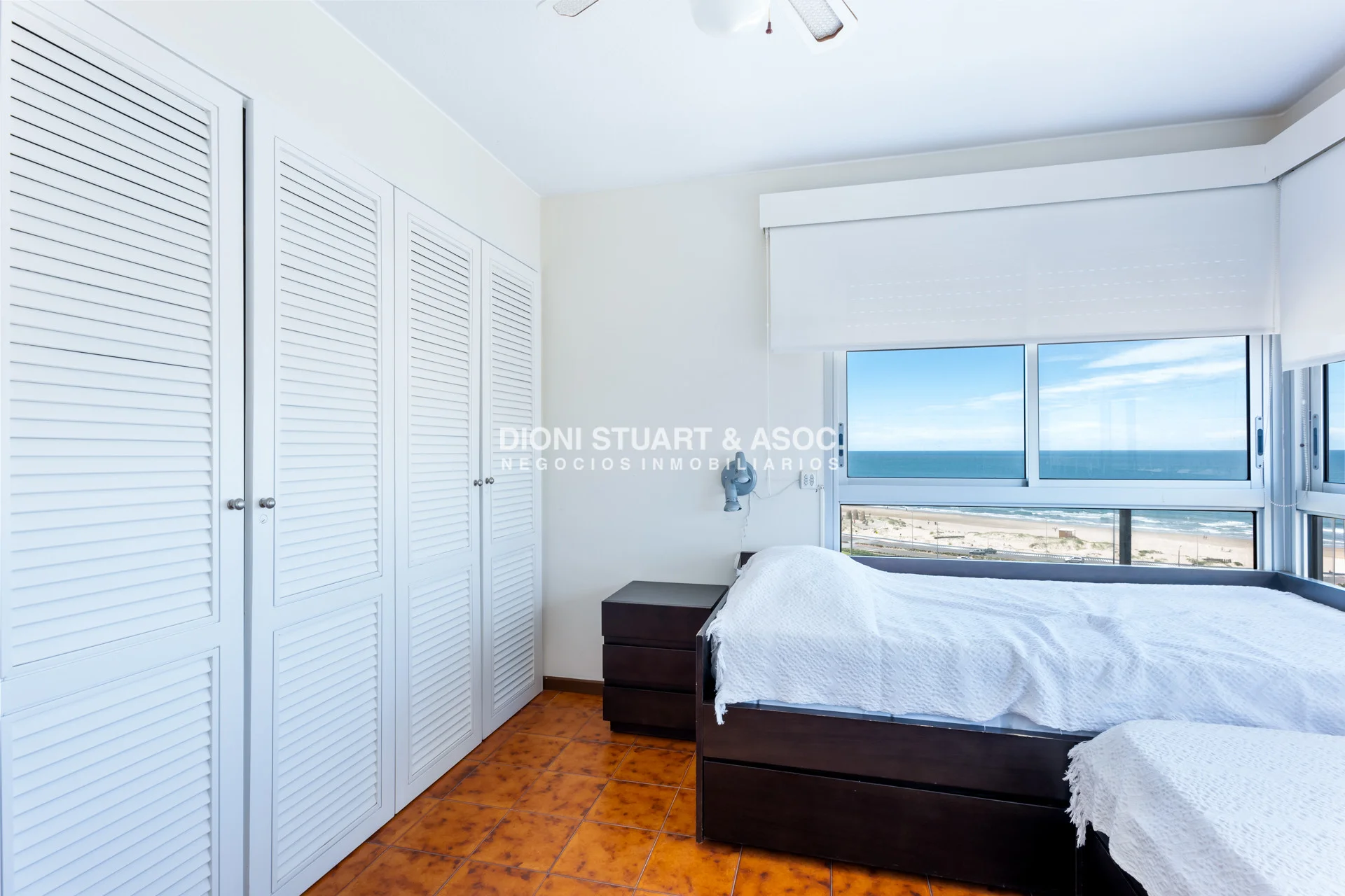 Espectacular apartamento en una ubicación inmejorable cerca de Gorlero y frente al mar en la Parada 1 Mansa. Con vista a la brava, esta unidad ofrece un amplio living-comedor con terraza cerrada, tres dormitorios y dos baños (1 en suite) y a demás, dependencia de servicio con baño. El edificio tiene servicio de playa en la mansa y brava, recepción 24hs, mucama diaria, gimnasio, play-room.