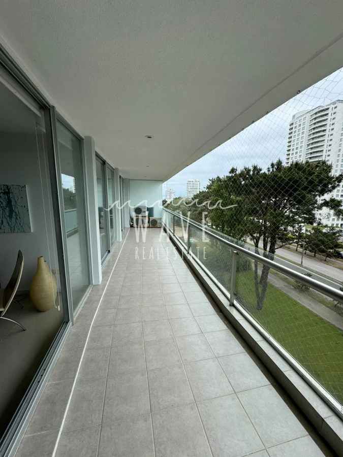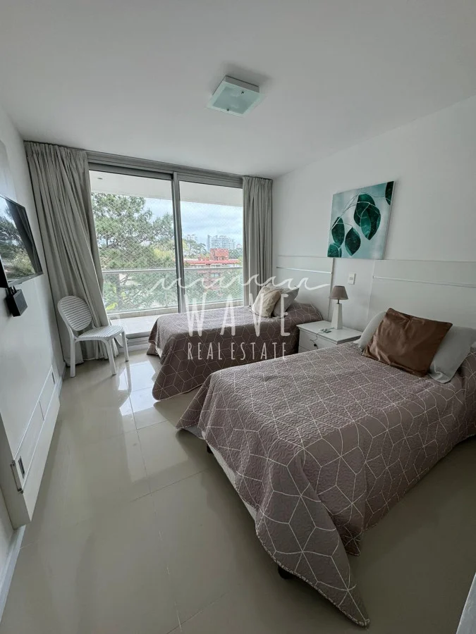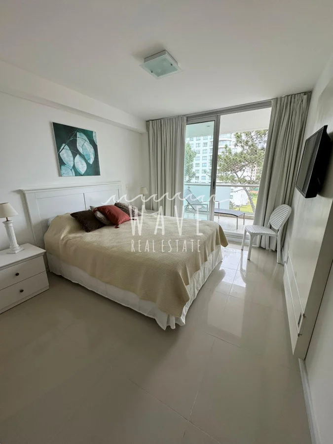 Hermoso departamento en alquiler en Punta del Este. Excelente ubicación en Roosevelt a tres cuadras de playa brava, y próximo a todos los centros comerciales y restaurantes. Cuenta con dos dormitorios, uno de ellos en suite con vestidor, living comedor, cocina integrada con especio de lavadero, gran terraza con vista parcial al mar, donde podrás disfrutar de hermosos amaneceres y atardeceres! Amplios espacios y cómodos placares.