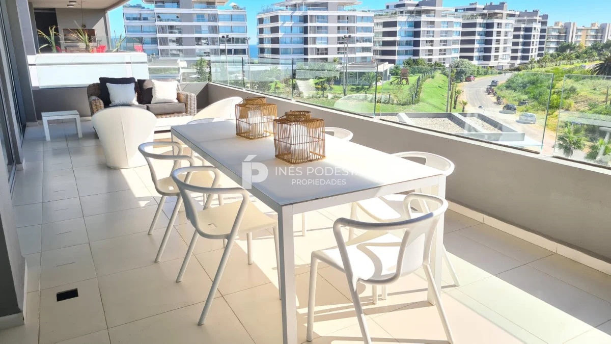 Brava vista al mar!! Excelente planta de 250 m2 totales, amplio living comedor, toilette, 2 terrazas (una con parrillero), 3 suites, dependencia de servicio, 2 gge. Todos los servicios de un 5 estrellas. Referencia Interna : Tera-671