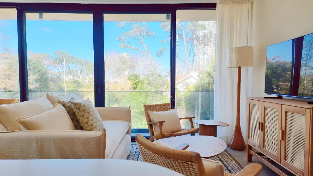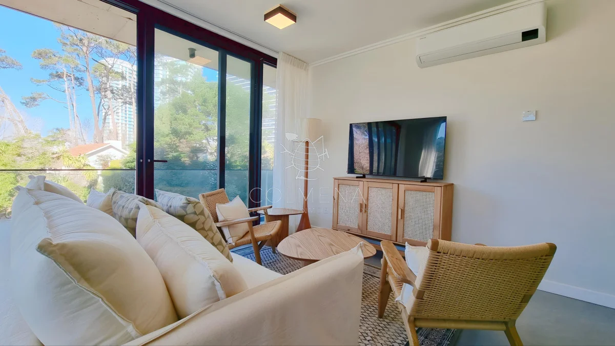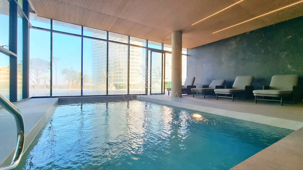 Apartamento a estrenar en primera linea de playa Mansa - Punta del Este Edificio Ubicado Frente al Mar en la parada 18 de playa mansa! Unidad de 2 Dormitorios, uno de ellos en suite + 2 Baños y balcón con vista parcial al mar Cocina : Integrada, Living Comedor La unidad se entrega totalmente equipada y amoblada; con aire acondicionado y losa radiante sectorizada Amenities: Piscina climaztiada interior y exterior; gimnasio; playroom; amplio jardín común con espacios verdes Superficie Total : 115 m2 Consulte con nuestros asesores. Referencia Interna : Tera-8945
