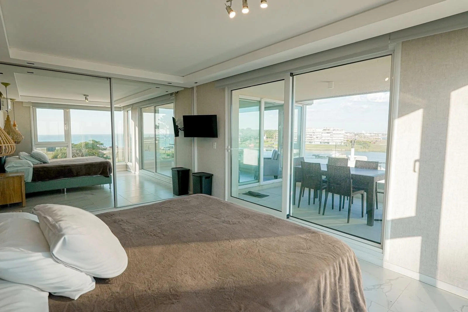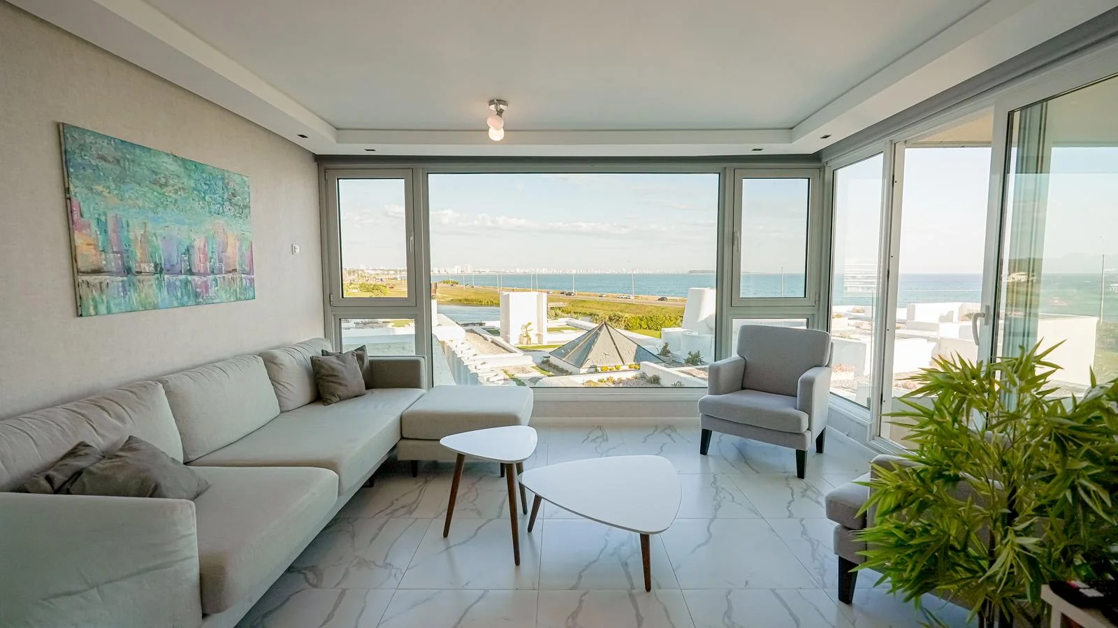 Área Social: Amplio salón-comedor con grandes ventanales que conectan a un balcón principal con vista directa al mar .
