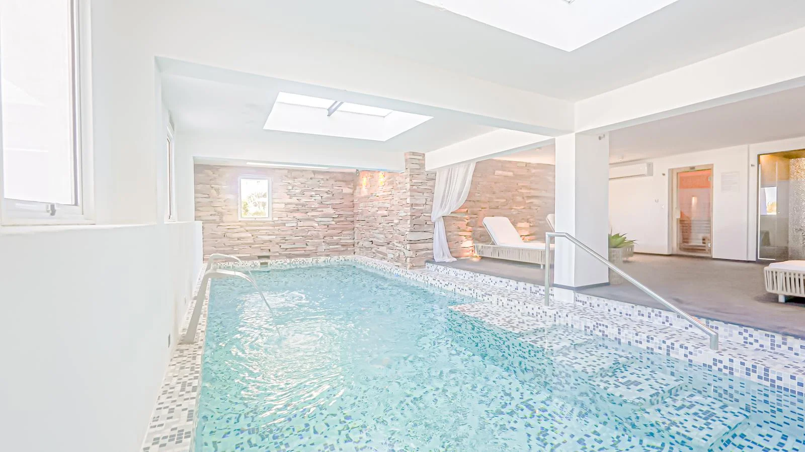 Bienestar (Spa & Wellness): Sauna seco, sala de masajes, salón de belleza y área de relax.