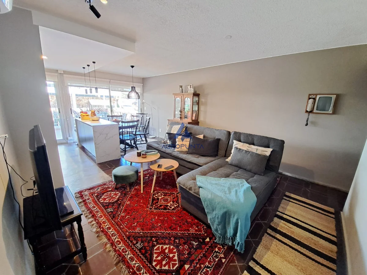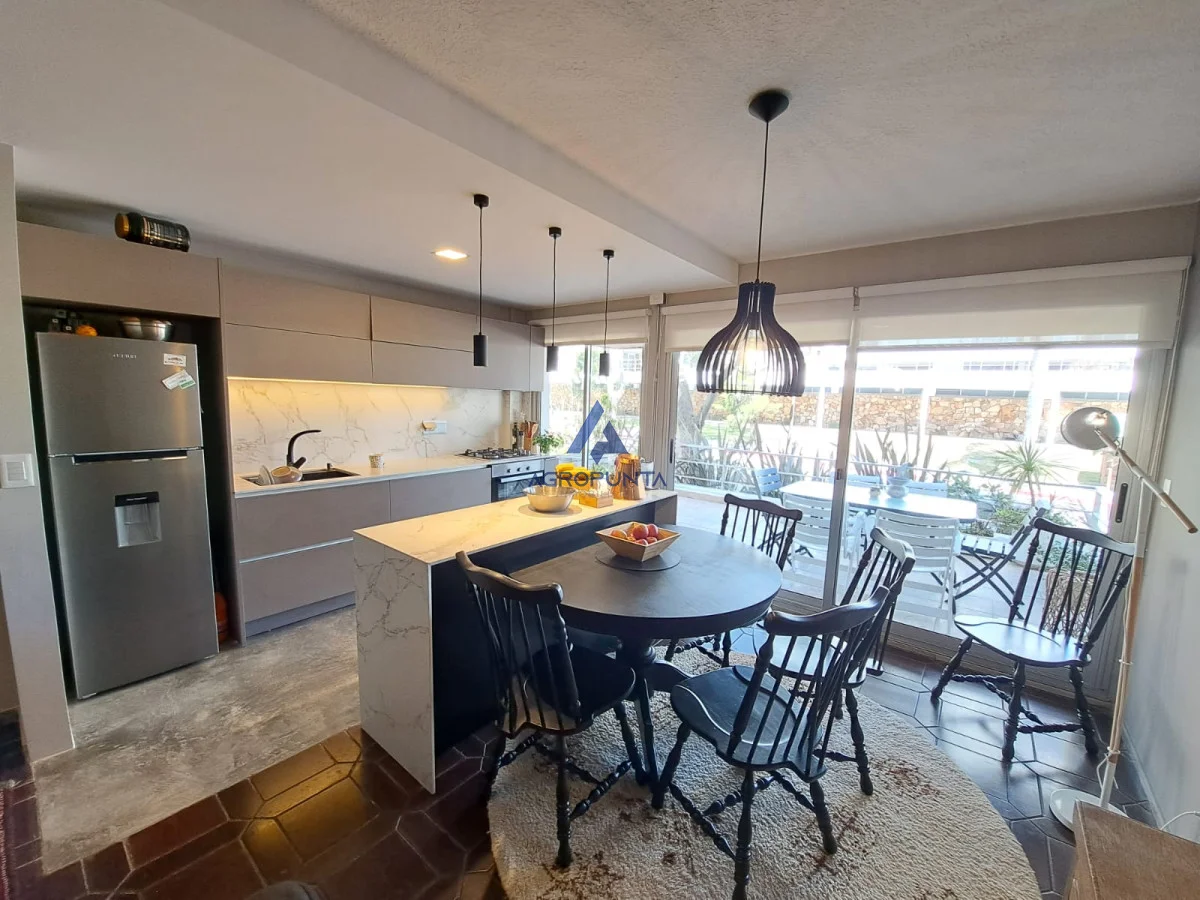 La cocina, completamente equipada con microondas y freezer, se abre a un acogedor living-comedor, creando un ambiente perfecto para las reuniones y momentos de relax.