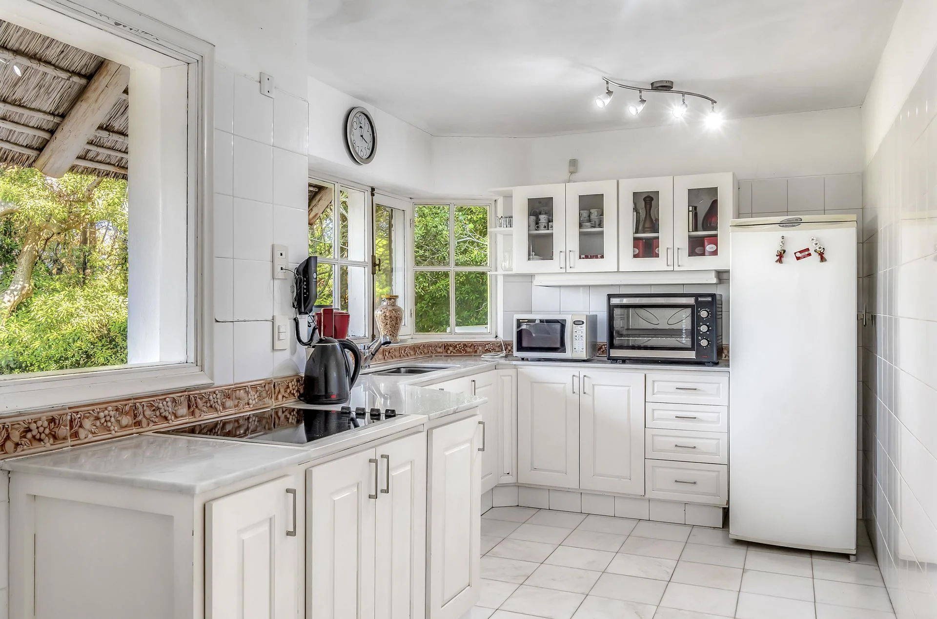La propiedad cuenta con una casa principal de 700 m², desarrollada en dos plantas con pisos de mármol Botticino y detalles de estilo francés.