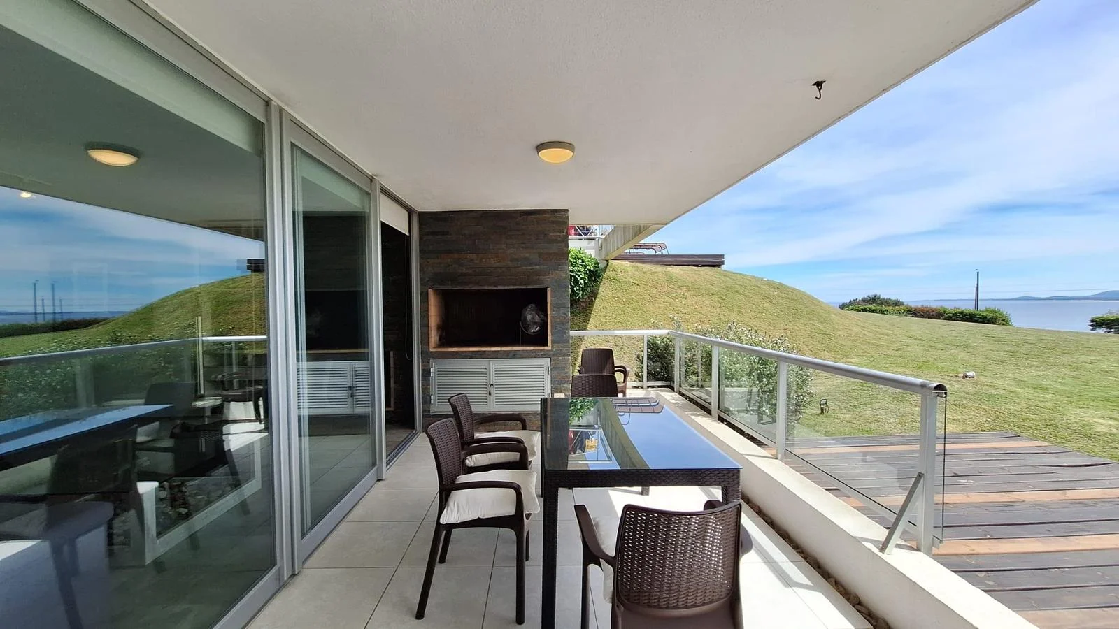 Terraza con parrillero individual y vista al mar, perfecta para cenas al atardecer