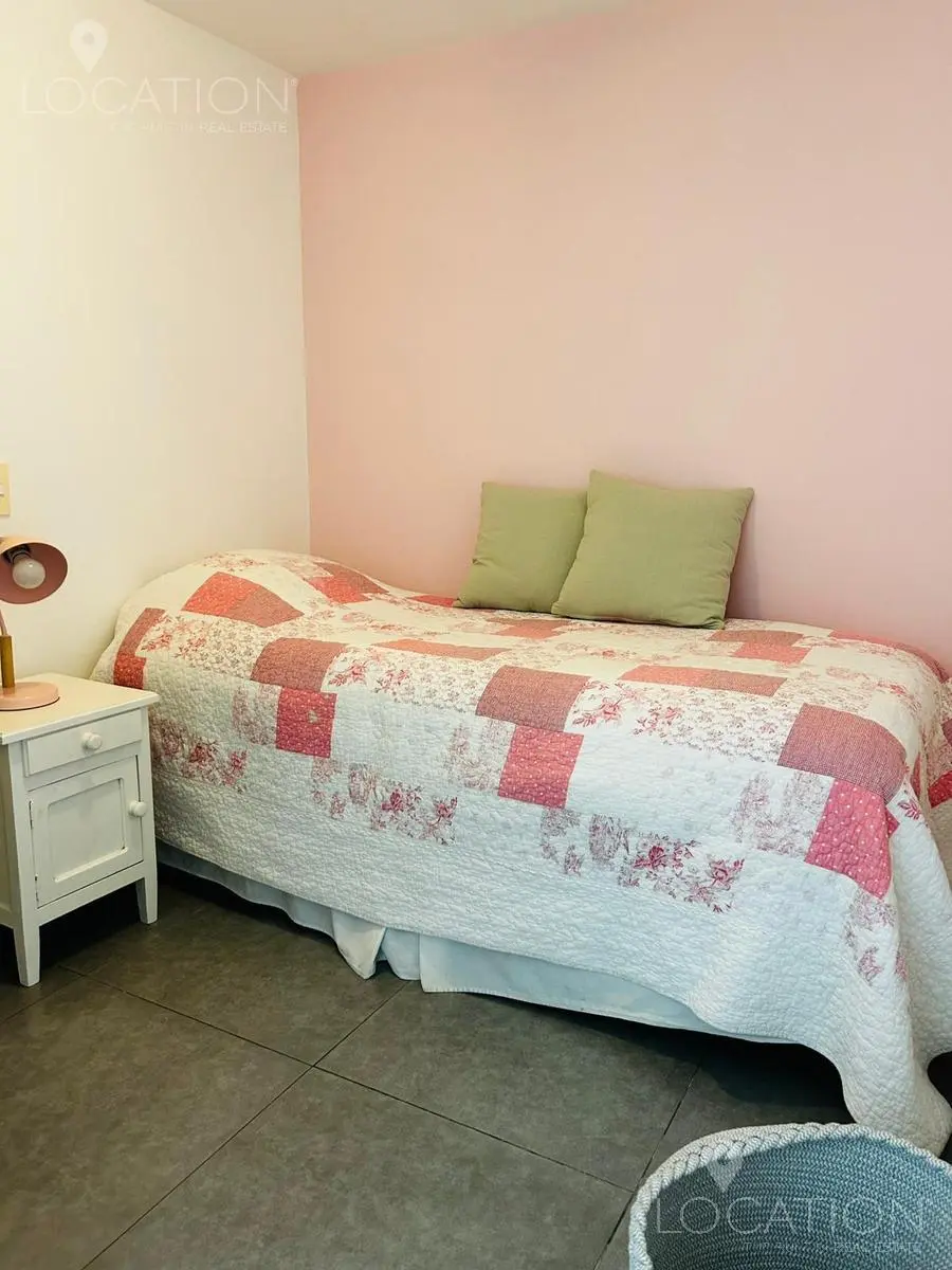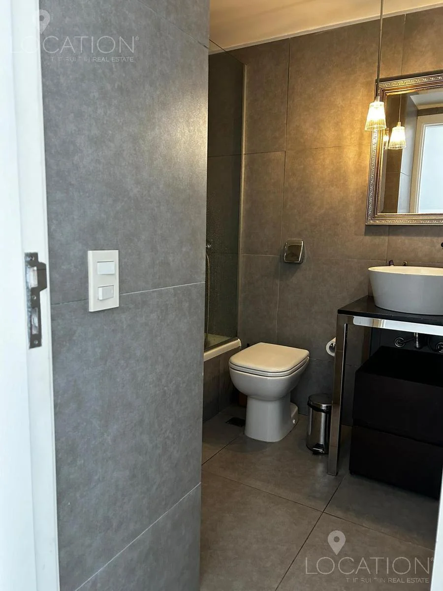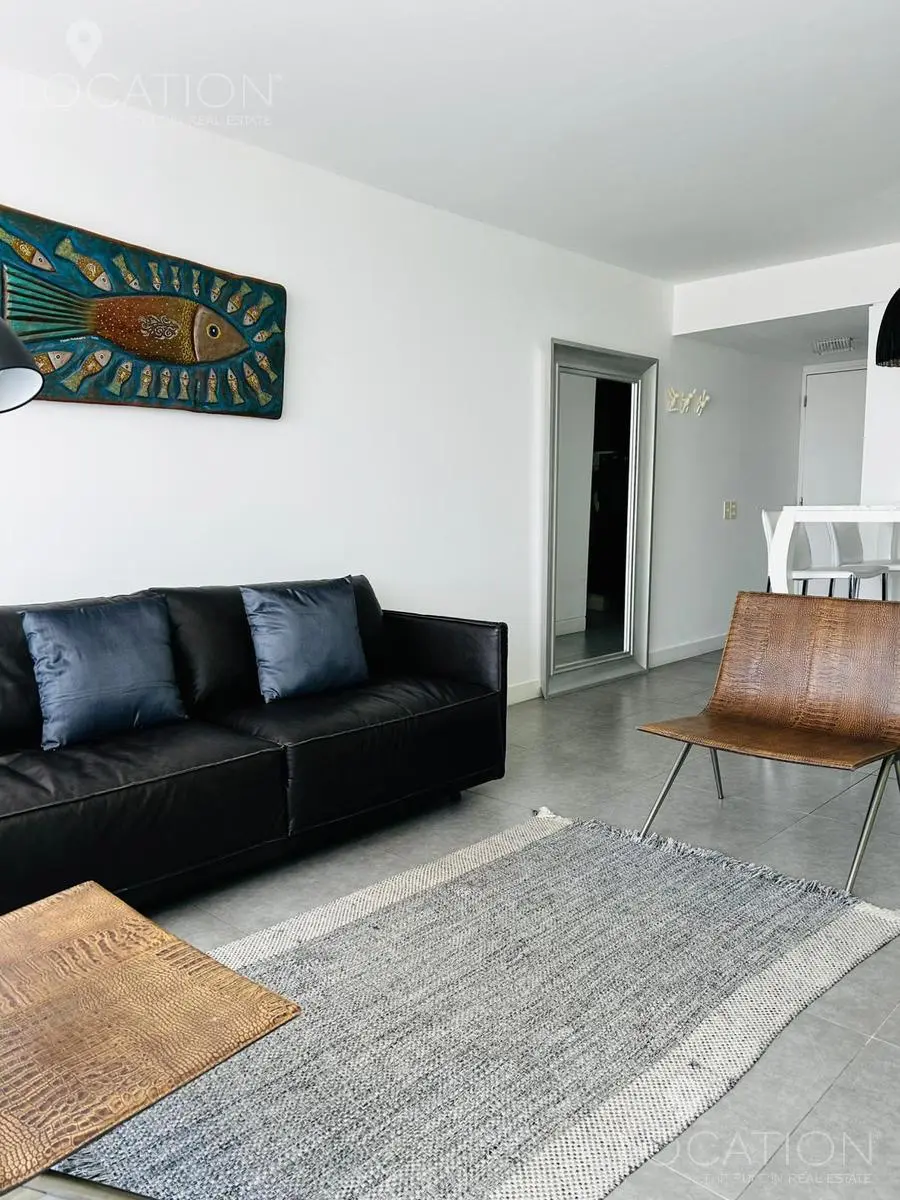 Excelente departamento de 1 dormitorio y medio en el piso 9,  contra frente , con disposicion norte,  muy luminoso, ideal para tres huespedes. Cuenta con dos baños, cocina completa, living comedor, balcón, estacionamiento, aire acondicionado en todos los ambientes y loza radiente. El edificio ofrece  mucama 3 veces por semana y servicio de toallas y sabanas.