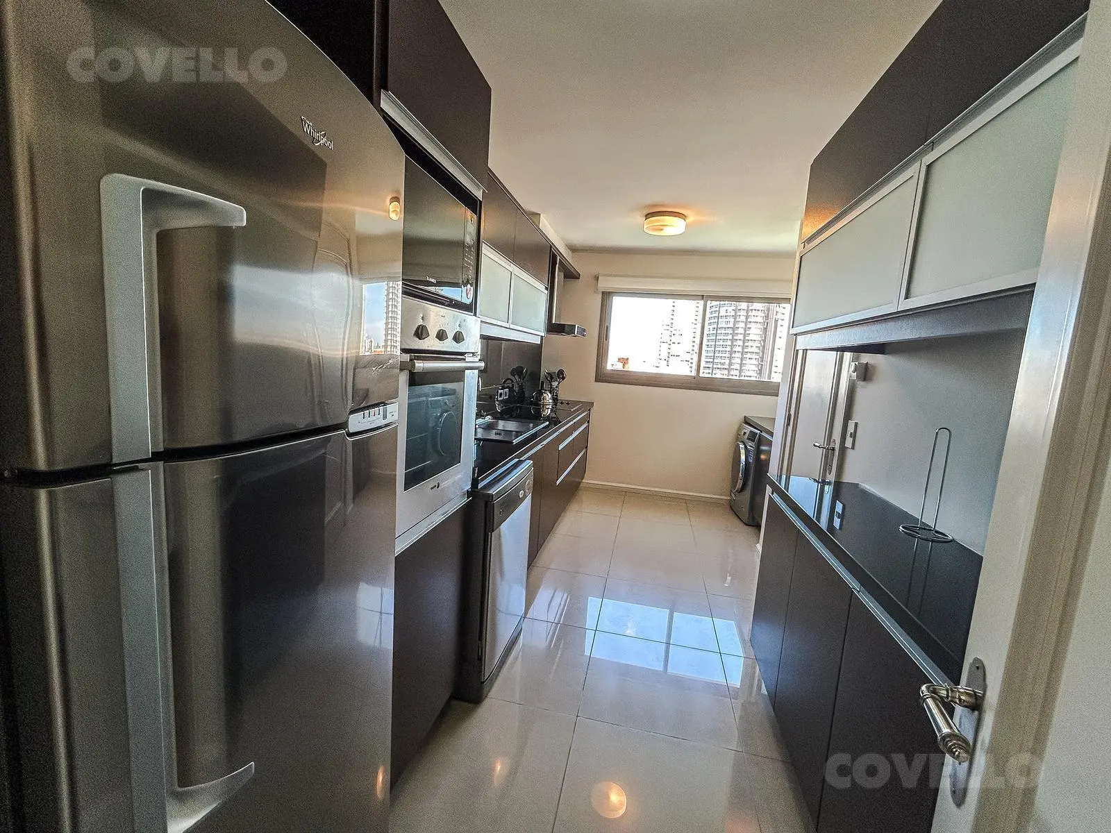 El departamento cuenta con un luminoso living comedor con ventanales de piso a techo, que integran los ambientes al exterior y potencian las vistas.