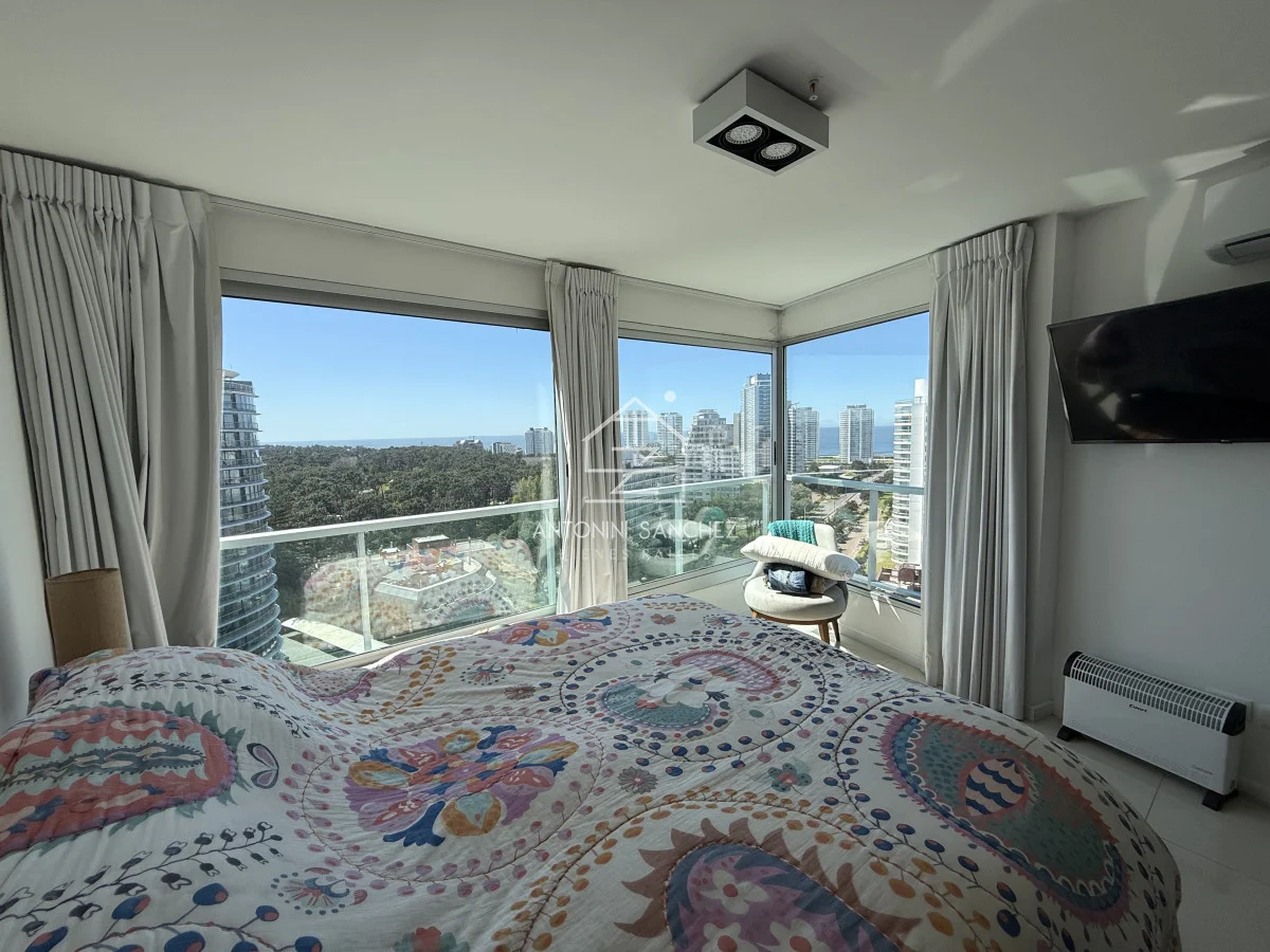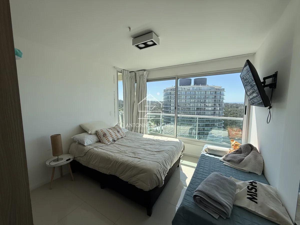 Cómodo y nuevo apto en alquiler invernal Living comedor con cocina semi integrada, terraza con vista despejada a la Brava Tres dormitorios, dos baños uno en suite Airea condicionado, wifi del edificio y servicio de mucamas una vez a la semana Garage Esta unidad no acepta mascotas Referencia Interna : Tera-2927