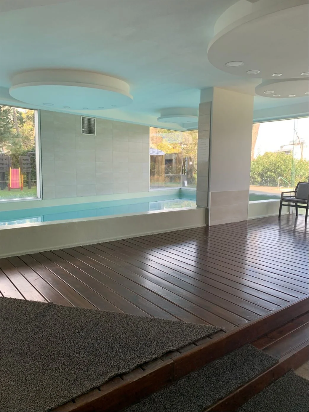 El edificio cuenta con piscina exterior, piscina climatizada interior, gym, sauna, microcine, sala de reuniones, barbacoa, seguridad 24 hs, mucama.