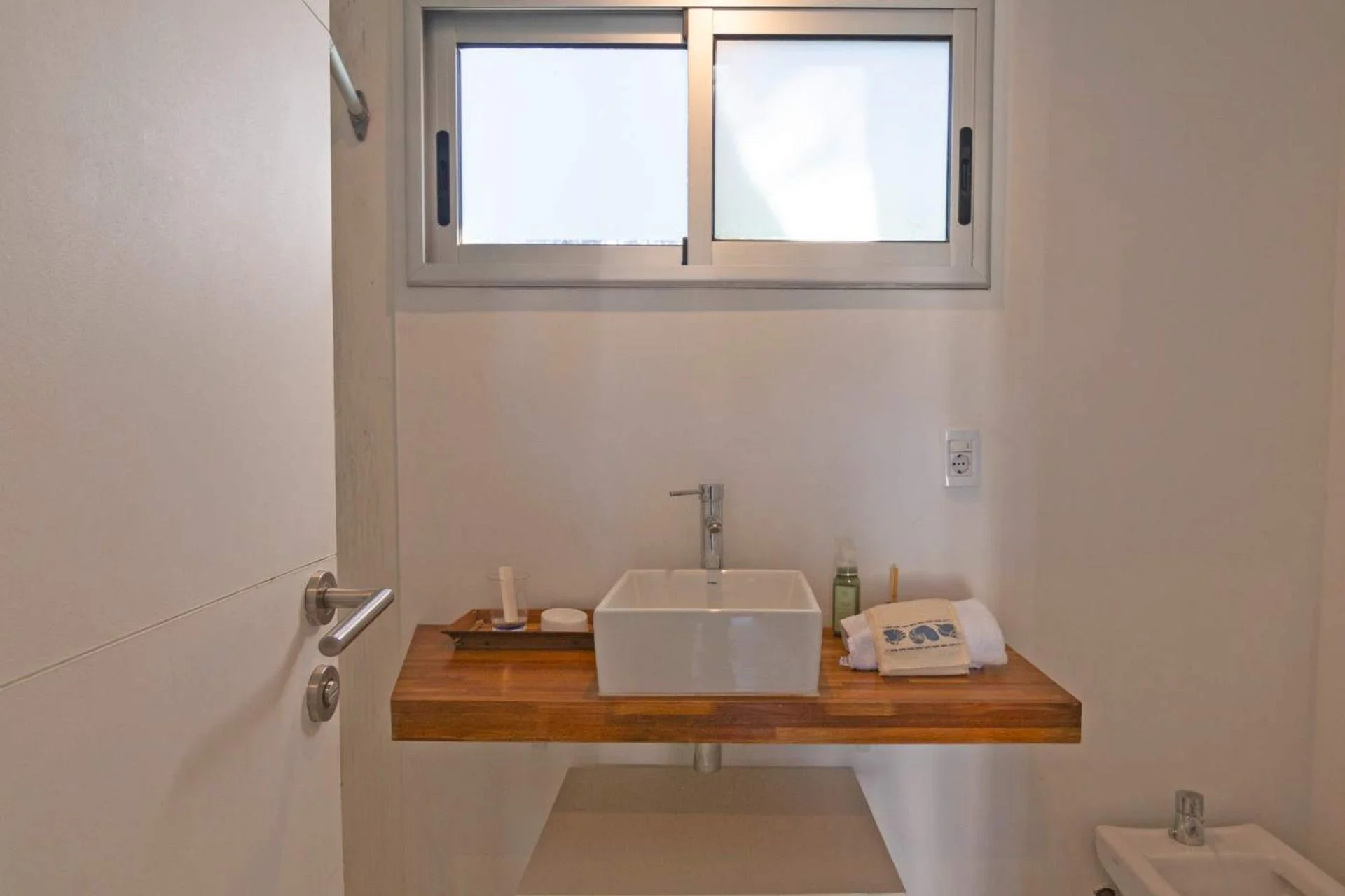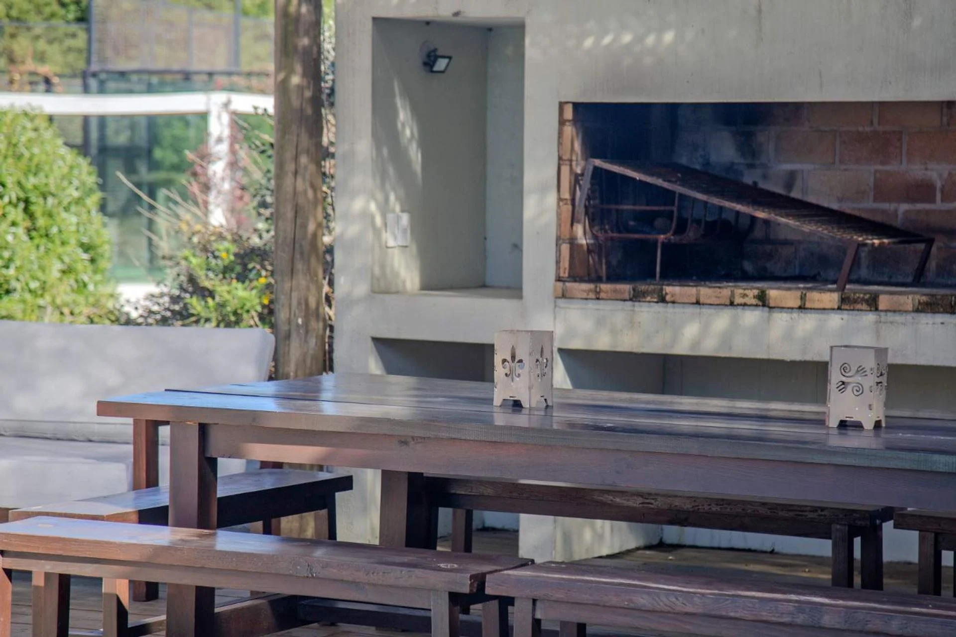 Exterior, cuarto de servicio con baño accesible para uso de la piscina.
