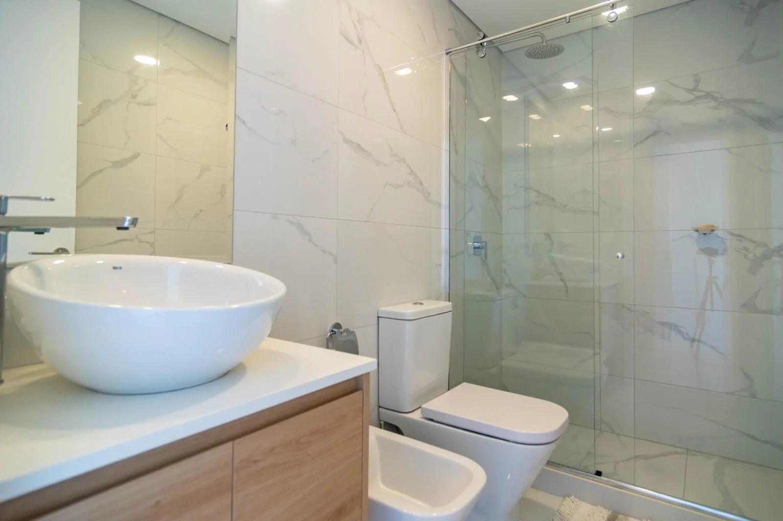 Este espacioso apartamento cuenta con tres dormitorios en suite, cada uno diseñado para brindar privacidad y confort. La suite principal incluye un elegante vestidor, ideal para un estilo de vida sofisticado. Además, dispone de un baño social y un amplio balcón que se convierte en el lugar perfecto para disfrutar de espectaculares atardeceres gracias a su orientación oeste.