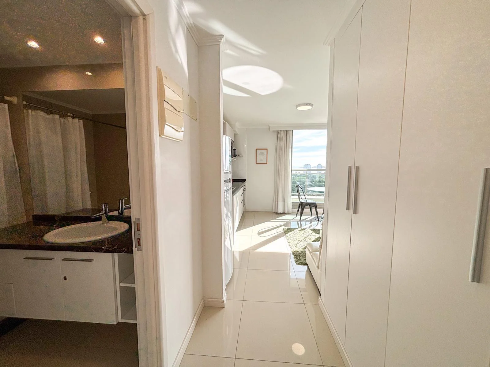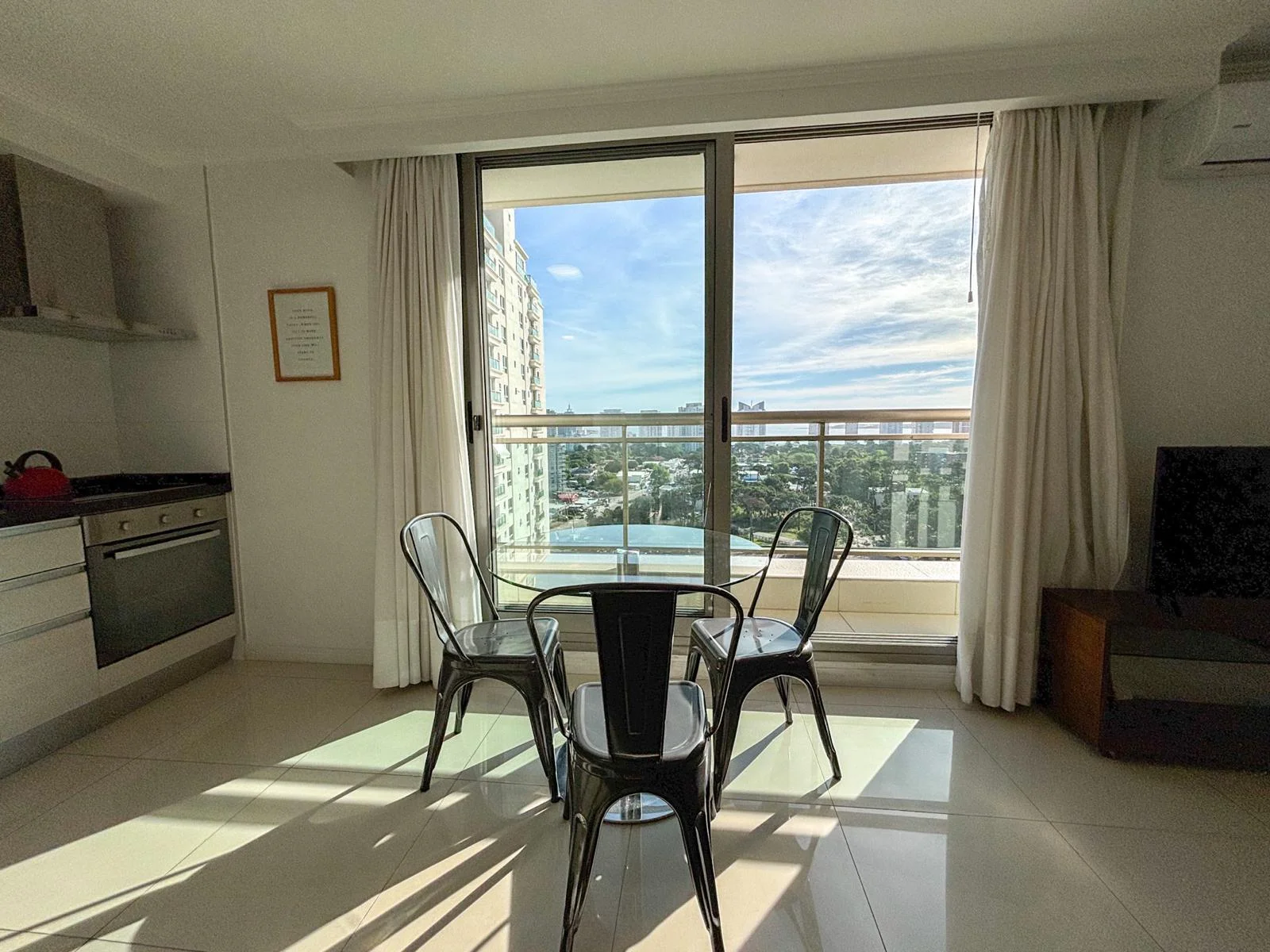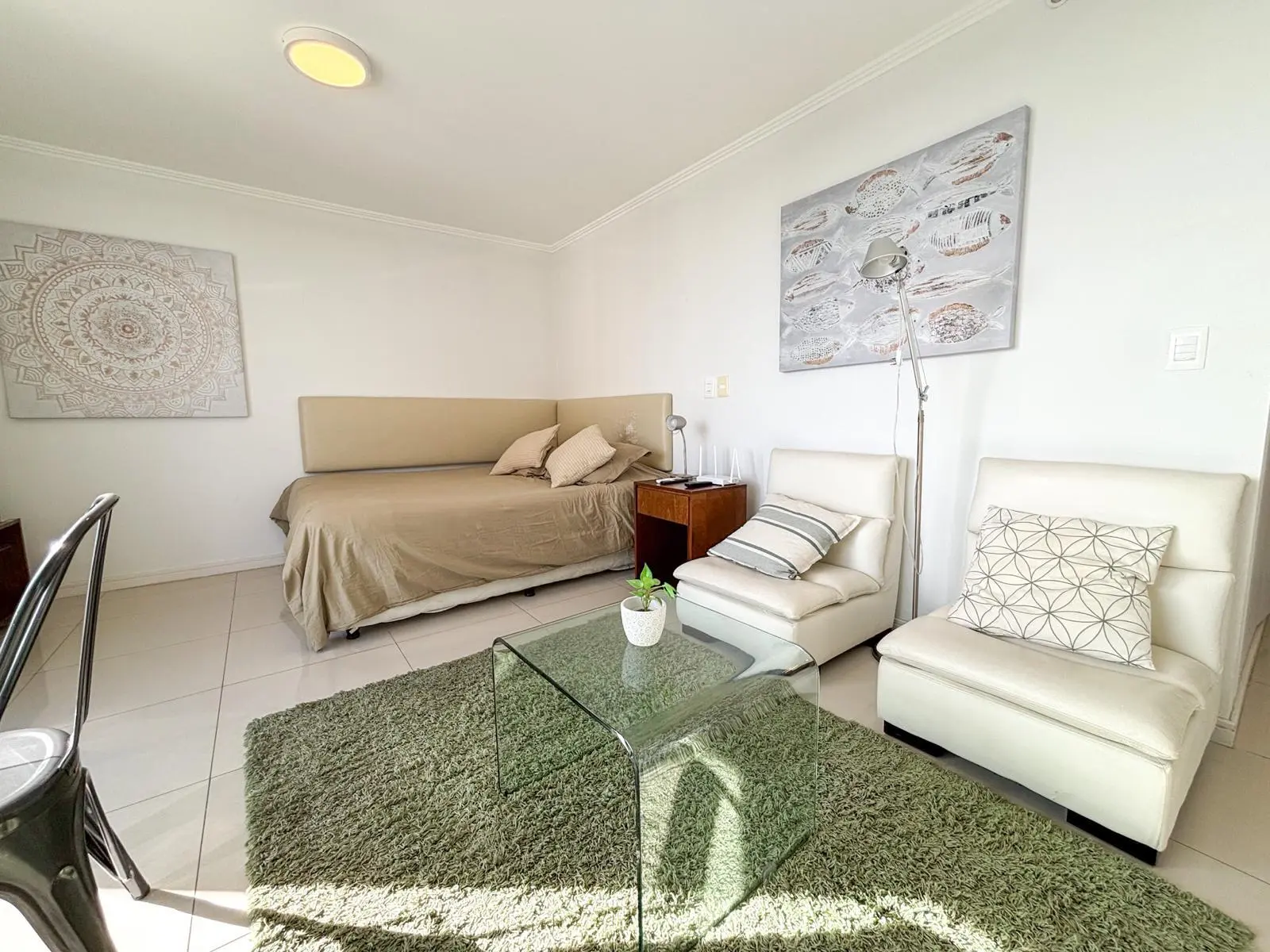 Departamento monoambiente, cocina integrada, baño y una vista hermosa.