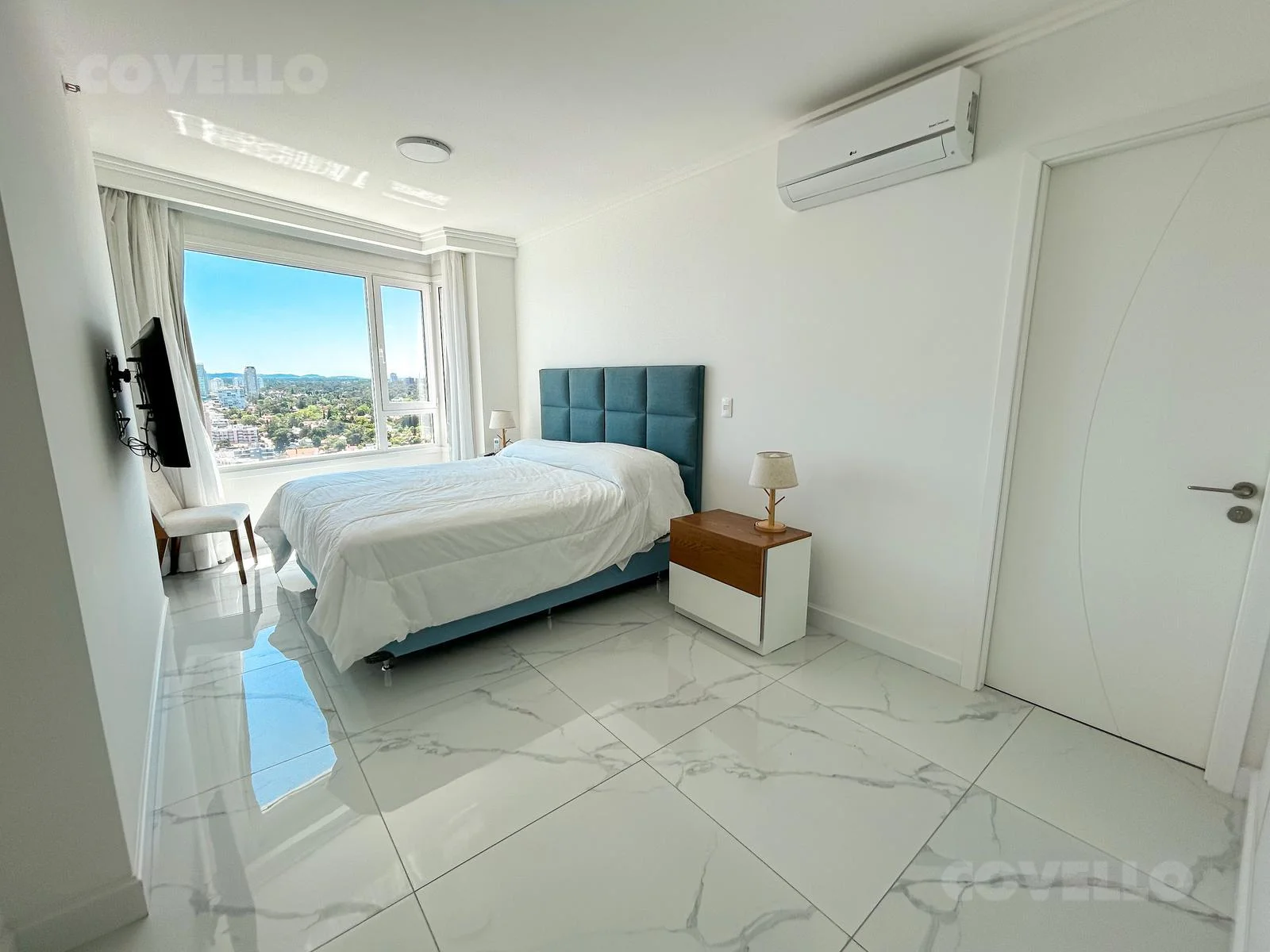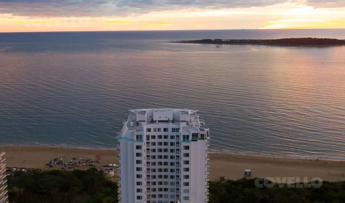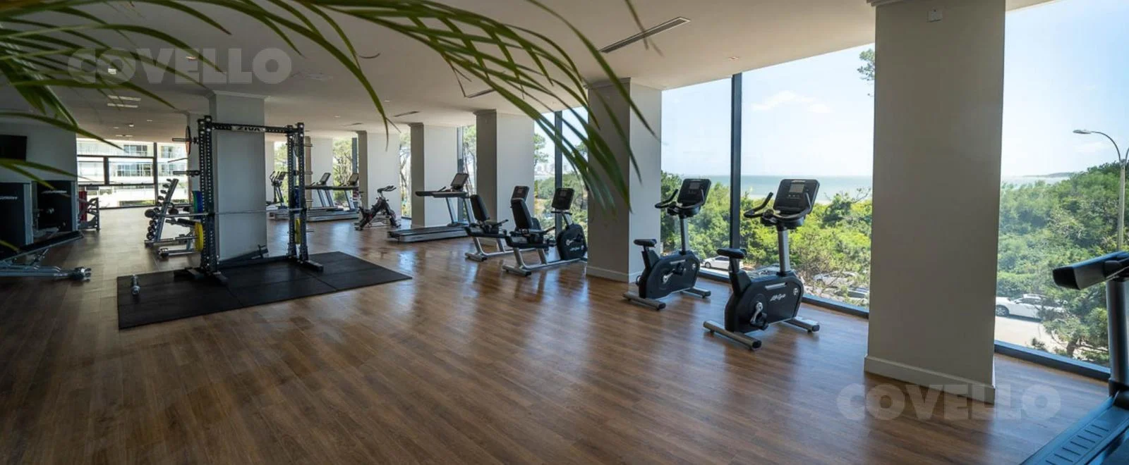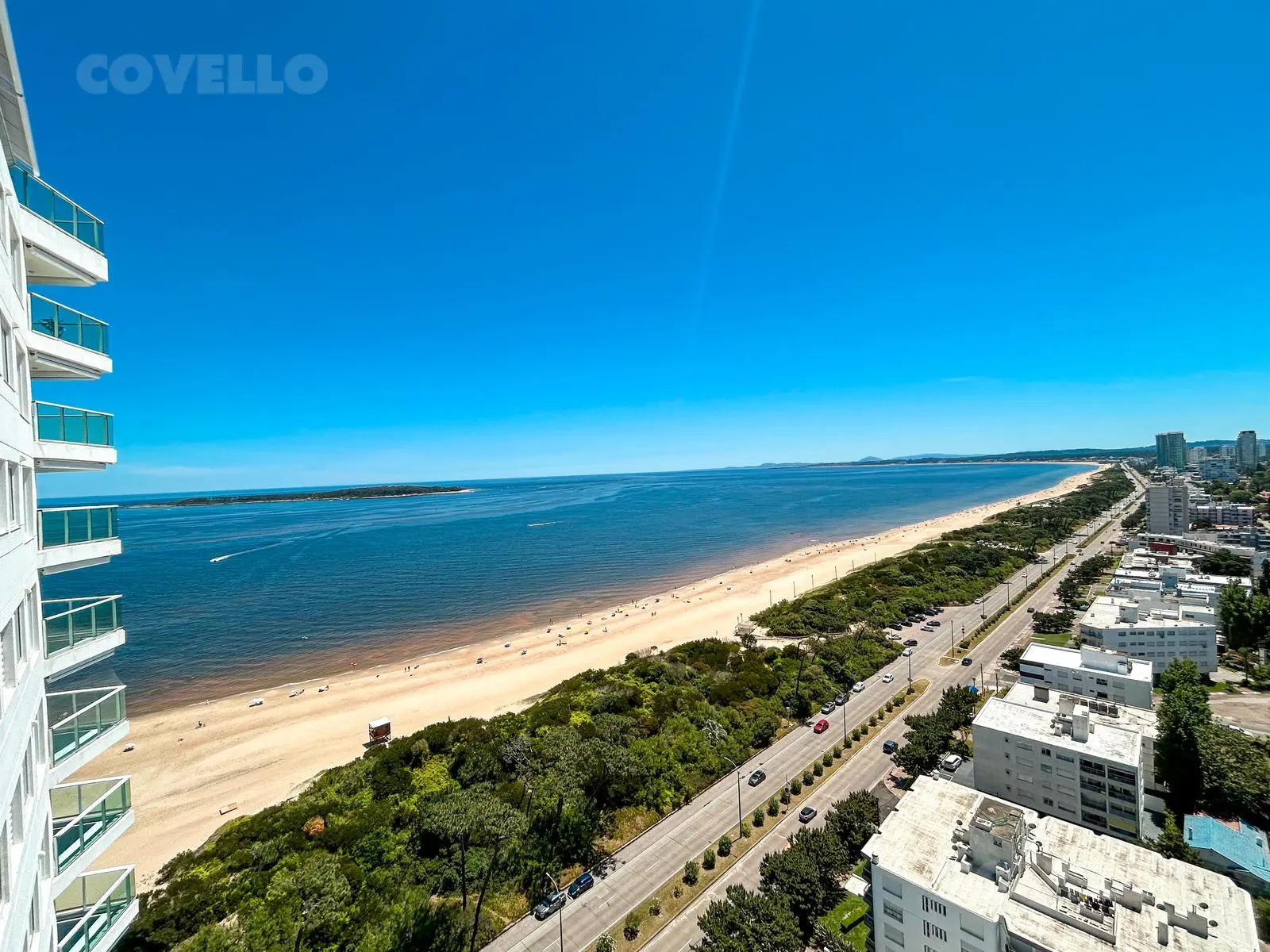 Apartamento lateral con vista al mar de la mansa. Ubicado en moderna torre con amenities de primer nivel en parada 10 de Playa Mansa. Cuenta con 2 dormitorios en suite, cocina definida, living comedor con salida a terrazas. Garaje en sub suelo.