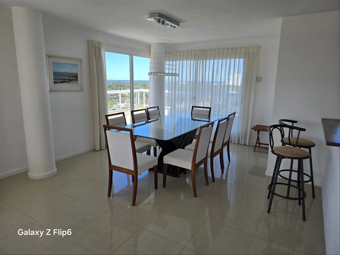 Amplio living comedor con excelente iluminación y amplia terraza en ambos extremos.