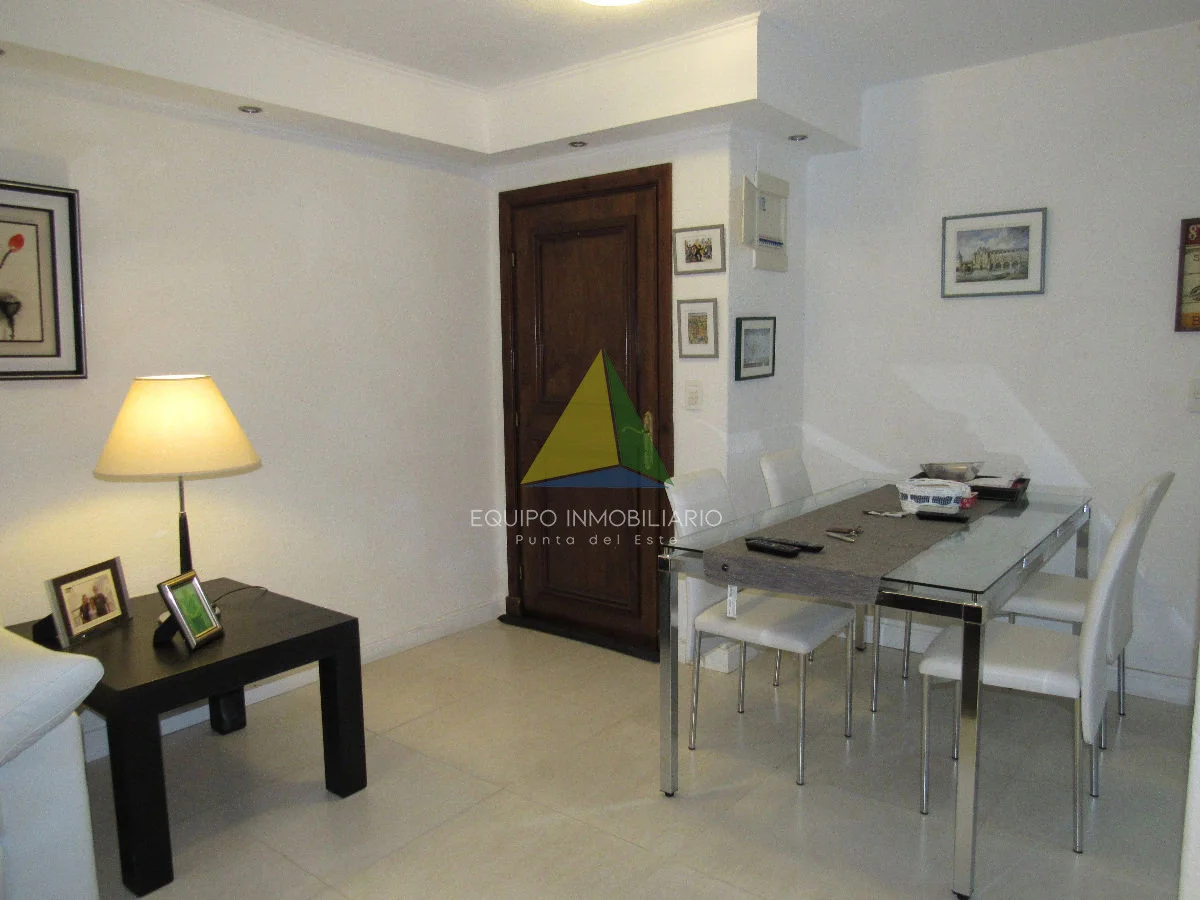 Impecable apartamento ubicado a pocos mts de Punta Shopping y cerca del mar ( Parada8,playa brava ) Amplio living comedor con aire acondicionado, cocina, dormitorio, baño amplio, garage. Pronto para entrar a vivir. El Edificio cuenta con vigilancia y recepción las 24 horas. Referencia Interna : Tera-4245