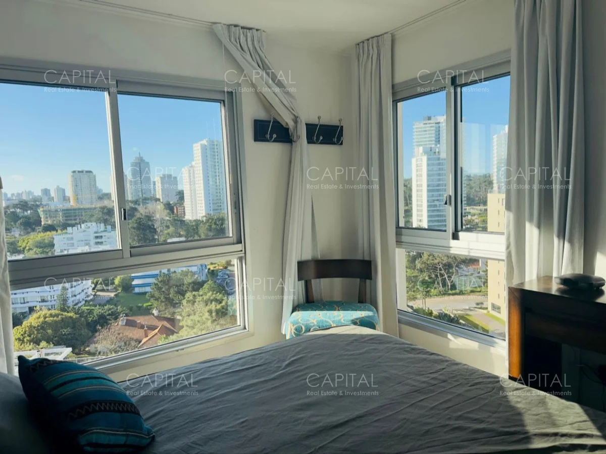 Exclusivo apartamento de 2 dormitorios en una de las mejores torres de Punta del Este, gran living comedor con salida a la terraza, cocina definida bien equipada, dos dormitorios con dos baños de los cuales tiene uno en suite. Ubicación privilegiada a 100 mts del mar.