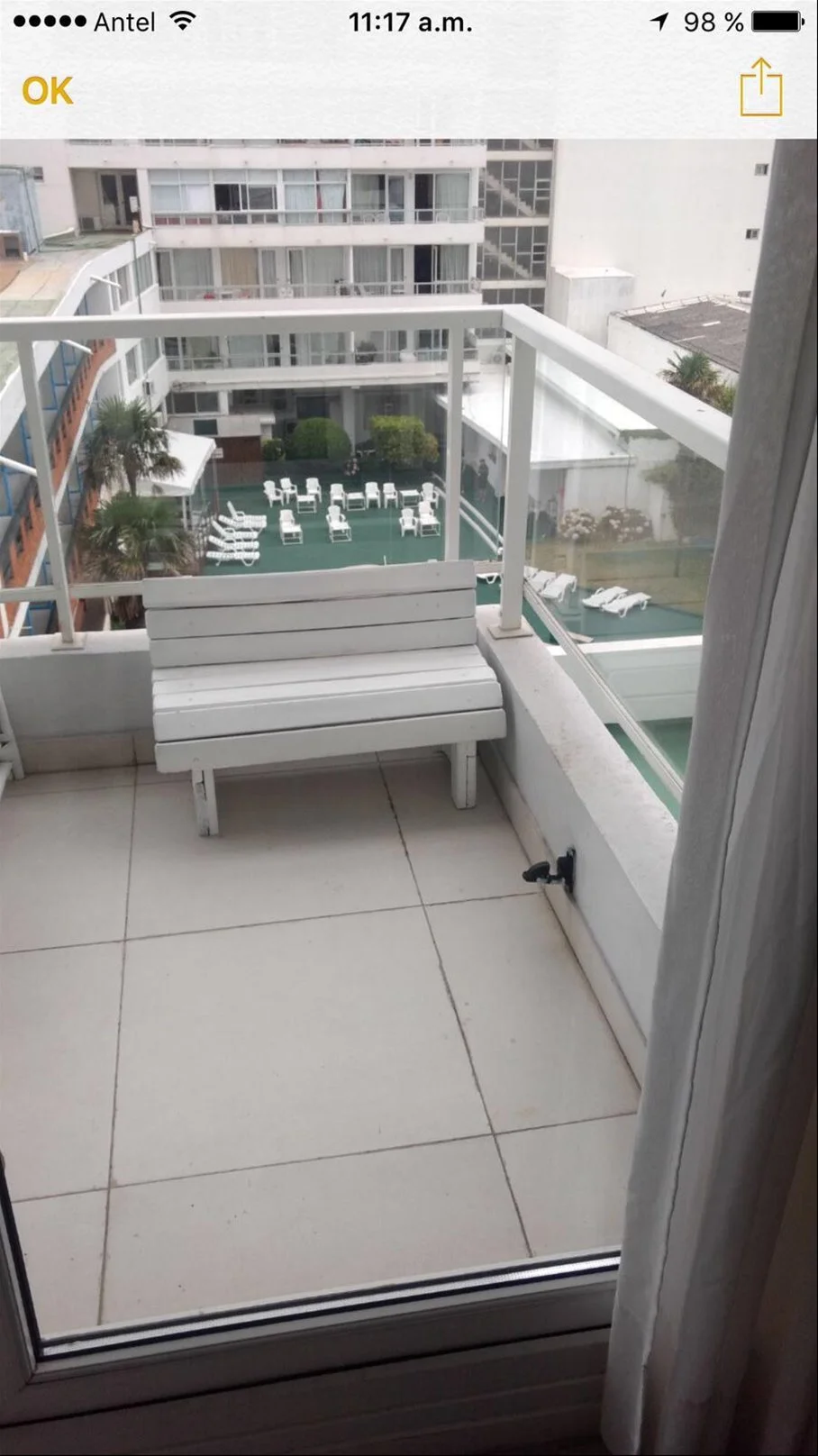 Terraza con vista a la piscina y mar lo que hace que sea cero ruidoso estando en el medio de todo y con todas las comodidades.