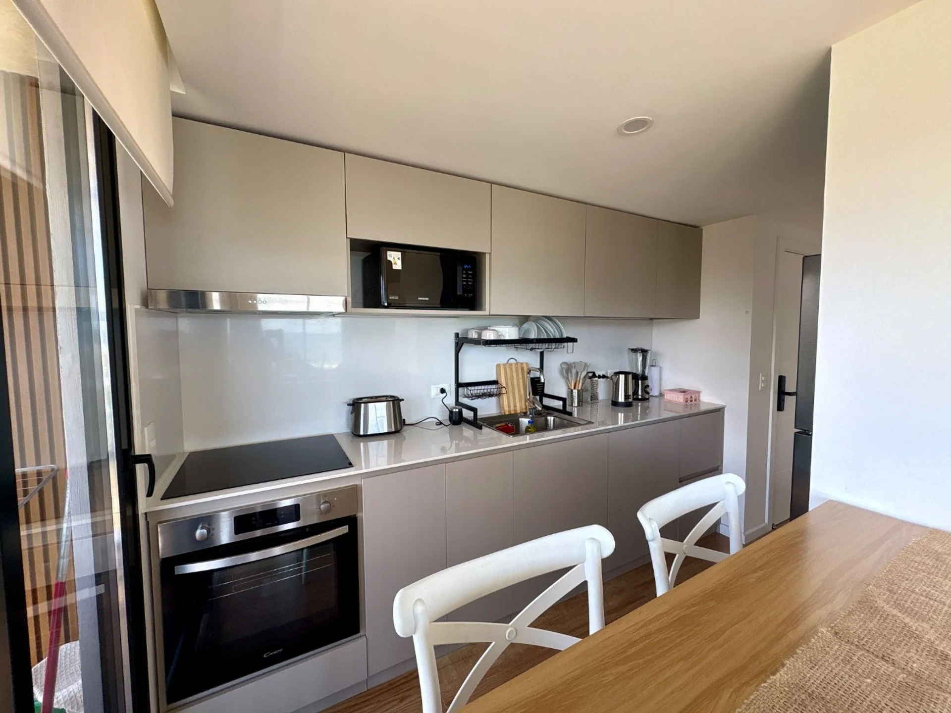 2 dormitorios 1 en suite, acomodan a 4 personas, baño completo, ideal para familias, cocina integrada al living, amplios balcones.