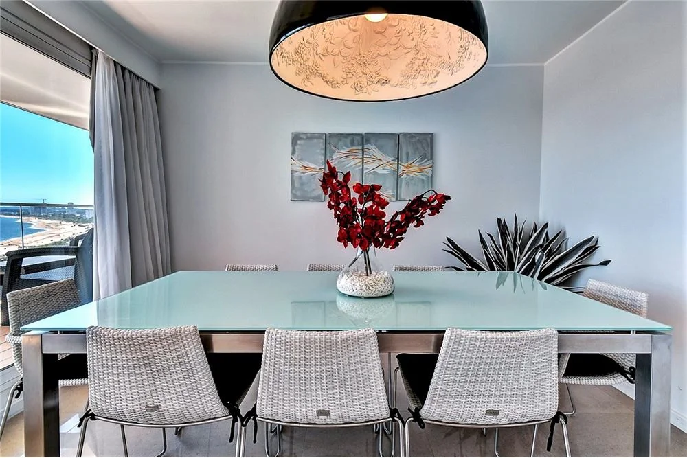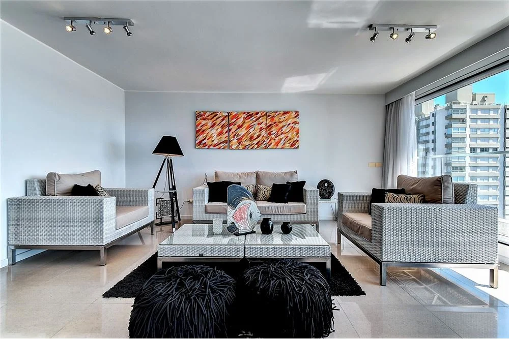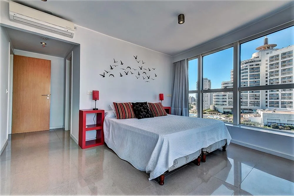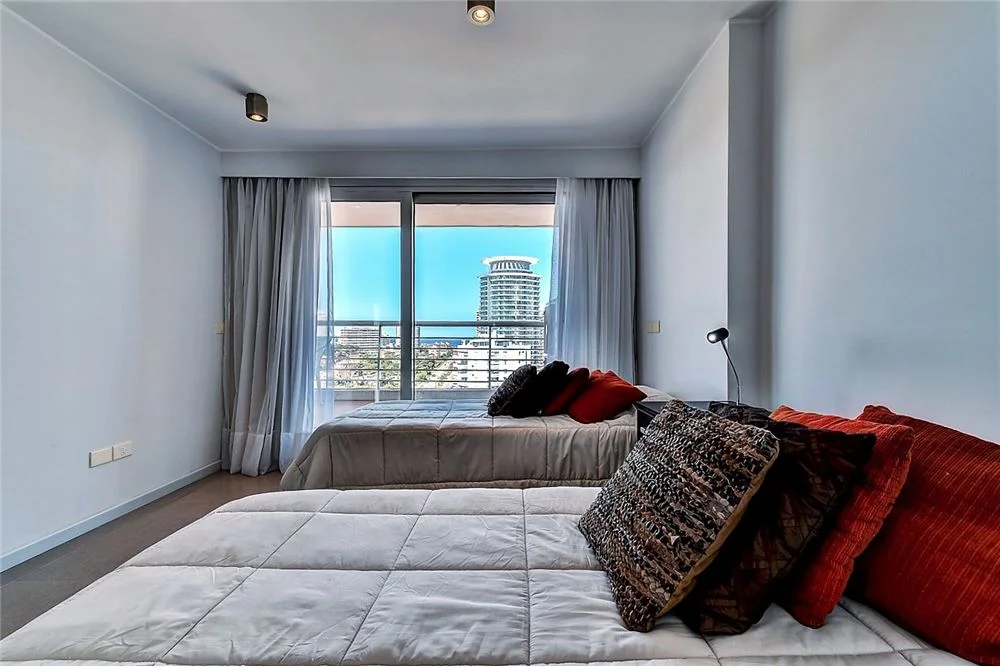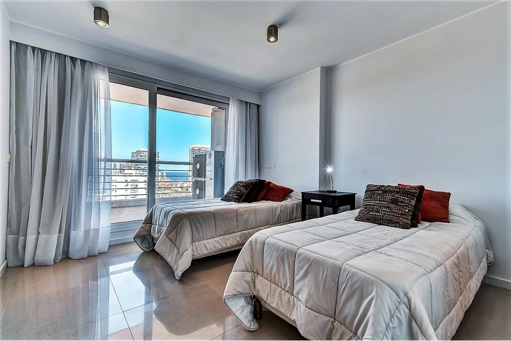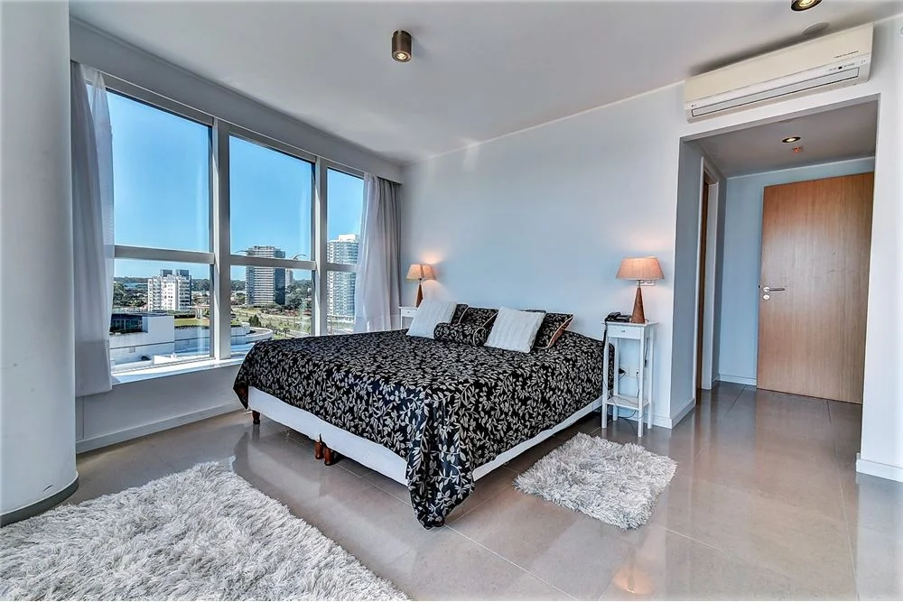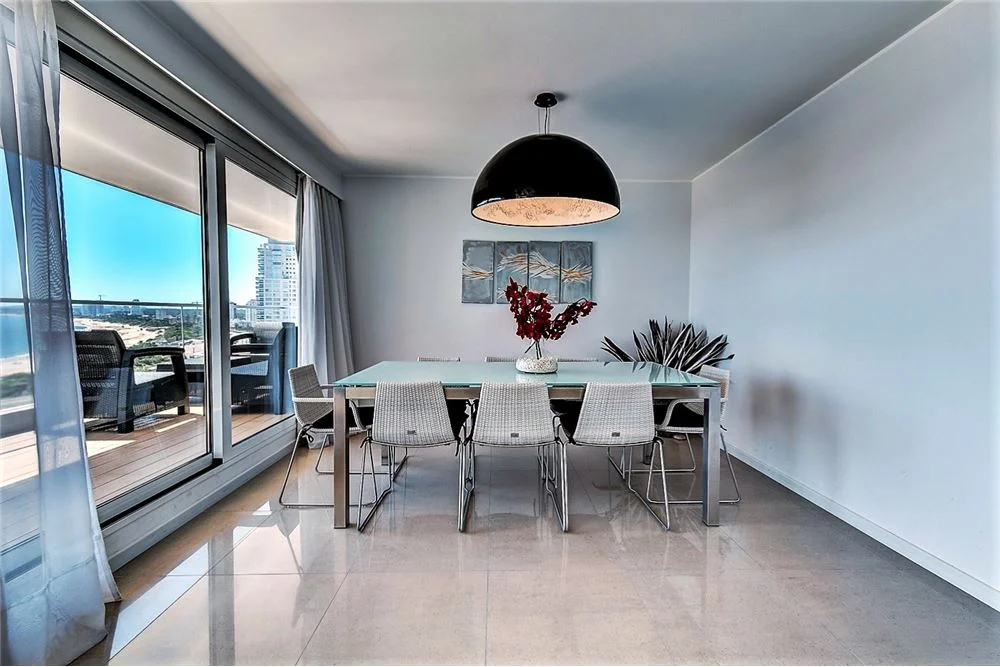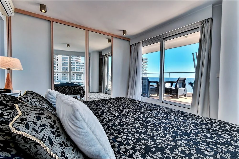 En Exclusividad: Departamento en alquiler invernal en la moderna torre Alexander Collection Condominium. Ubicación estratégica, en la parada 3 de la Playa Mansa frente al Hotel Casino Enjoy (ex Conrad). Se trata de un piso alto. Posee amplio living comedor con salida a la terraza y una impactante vista a la Playa Mansa. Cocina definida muy amplia, totalmente equipada, que conecta con la terraza lavadero. Tiene 3 dormitorios en suite + dependencia de servicio completa + toilette. Se halla muy bien equipado y amueblado, muy luminoso. Calefaccion por aires acondicionados frio calor. Garaje en subsuelo y baulera. Excelente calidad de construcción, aberturas de pvc con doble vidrio, pisos en porcelanato, amplios placares. El edificio ofrece diversos amenities y servicios: piscina climatizada externa, pileta cubierta, gimnasio, sauna, salón amplio de uso múltiple/ barbacoas, sala de internet, servicio de mucamas diario, recepción 24 horas. Ideal para disfrutar en familia y con amigos!