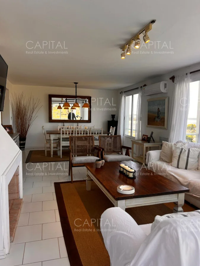 Frente al mar, amplio y luminoso. Cuenta con 4 dormitorios, uno de ellos en suite, toilette, cocina definida, living con estufa a leña y comedor. Terraza con parrillero propio y dependencia de servicio con baño. Ideal para vivir todo el año
