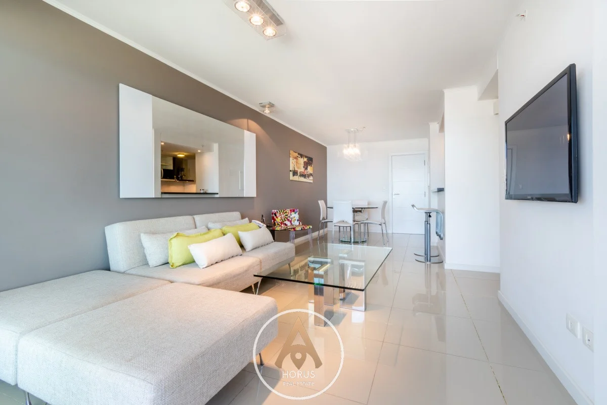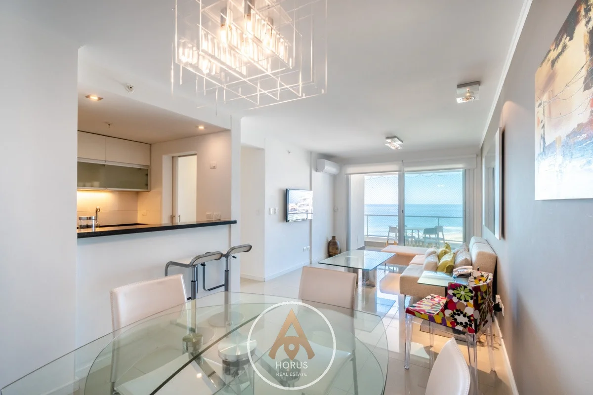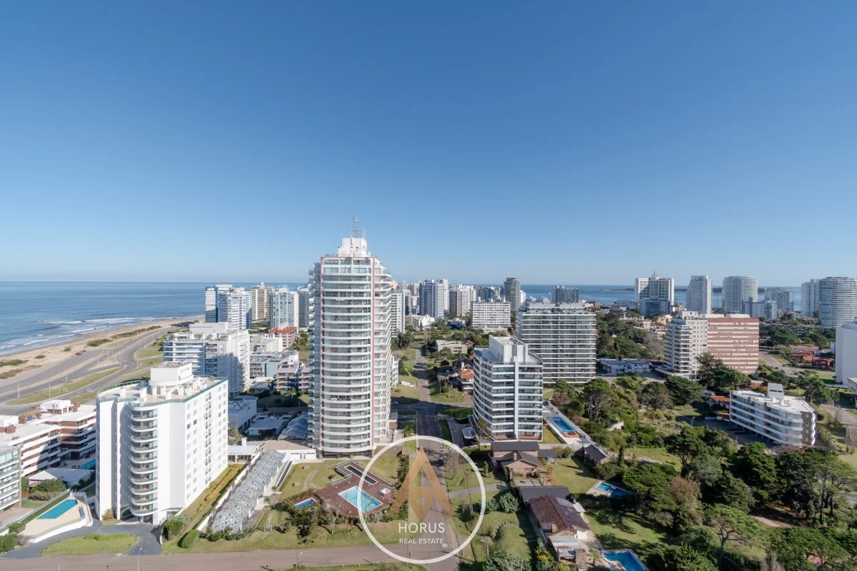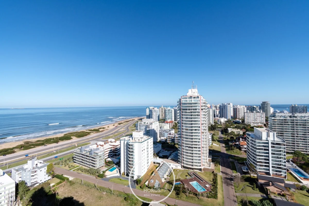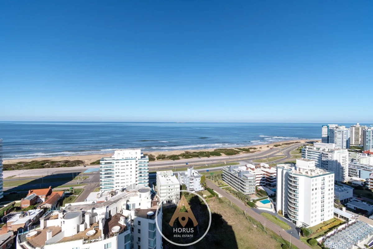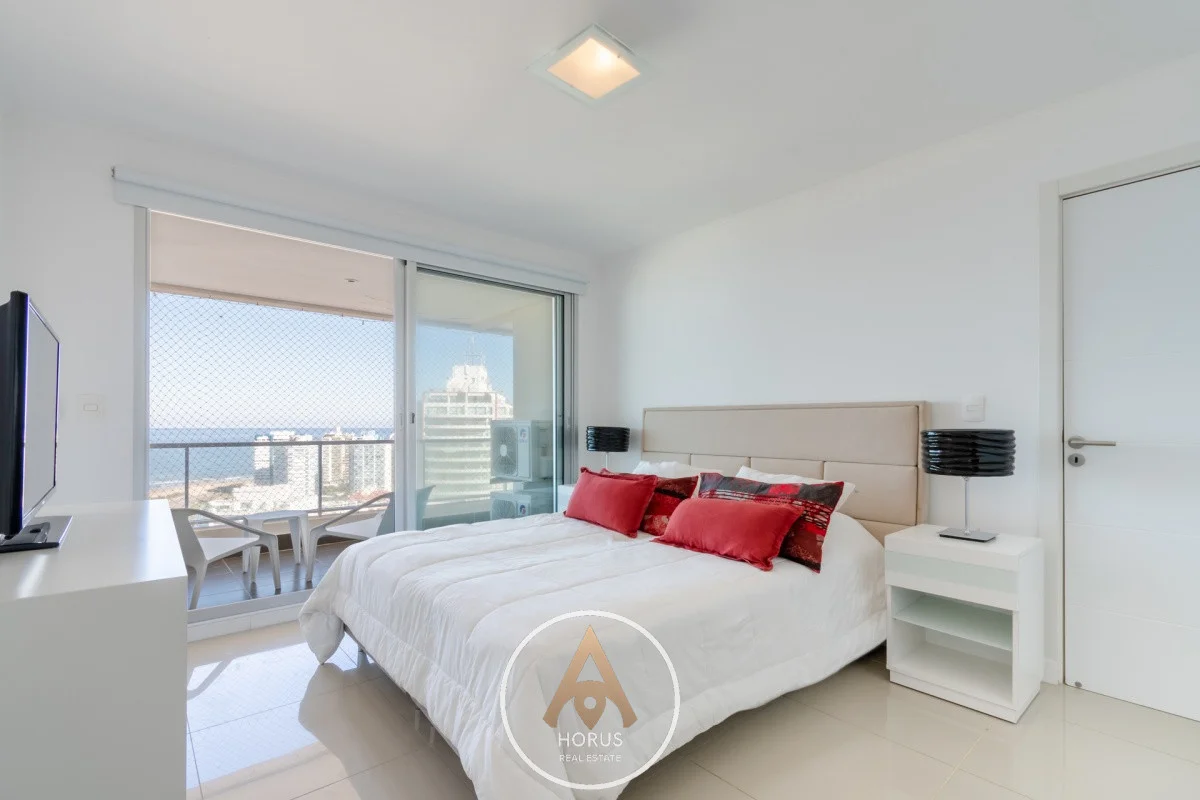 Excelente planta, con espacios amplios y luminosos, piso alto, con muy buena vista al mar de Playa Brava y a los atardeceres de la Mansa. Dispone de dos dormitorios, el principal en suite con vestidor, dos baños completos. Living comedor con extenso balcón mirando hacia el mar. Cocina bien equipada con barra-desayunador.