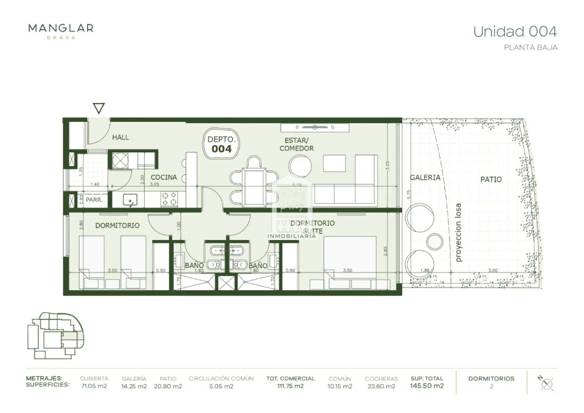 Planta con living comedor, cocina semi integrada con isla, amplia terraza con parrillero propio, 2 dormitorios y 2 baños, uno en suite. 86 m2 propios.