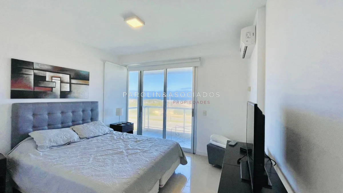 Cómoda planta mirando al mar. Unidad de tres dormitorios, todos con baños en suite y salida a balcón, más toilette. Luminoso living comedor al frente con terraza y vista. Gran cocina definida, con área de lavadero aparte. Aire acondicionado en todos los ambientes.