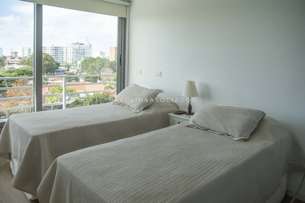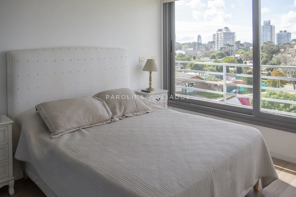 Apartamento de amplios y luminosos ambientes en una torre nueva, ubicada a solo metros de Playa Mansa. Con un moderno diseño y una amplia variedad de amenities, esta unidad es ideal para disfrutar todo el año. - 2 dormitorios en suite. - 1 toilette. - Living-comedor con acceso a gran terraza al frente. - Cocina definida con lavadero. - Garaje incluido. Para más información, no dudes en consultar con nuestros asesores, Parolin and Asociados Propiedades. Referencia Interna : Tera-9962
