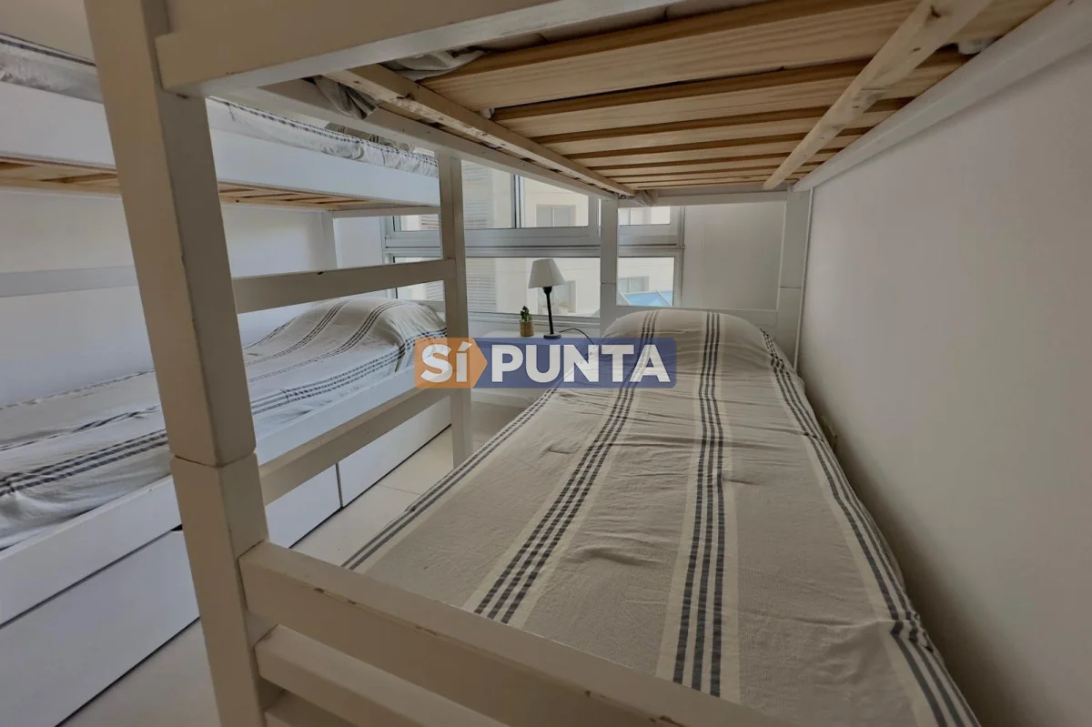 Apartamento de dos dormitorios, totalmente reciclado. Comodidades - Living comedor con salida a terraza. - Cocina completa con salida al Lavadero. - Habitación principal en suite. Con placard. - Segunda habitación, dos camas cucheta y placard. - Losa radiante y aire acondicionado. - A pocos metros de la playa Brava. Referencia Interna : Tera-13627