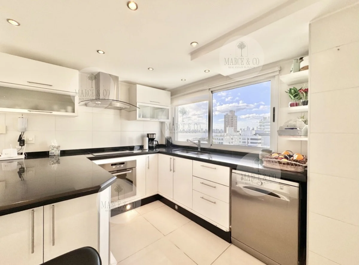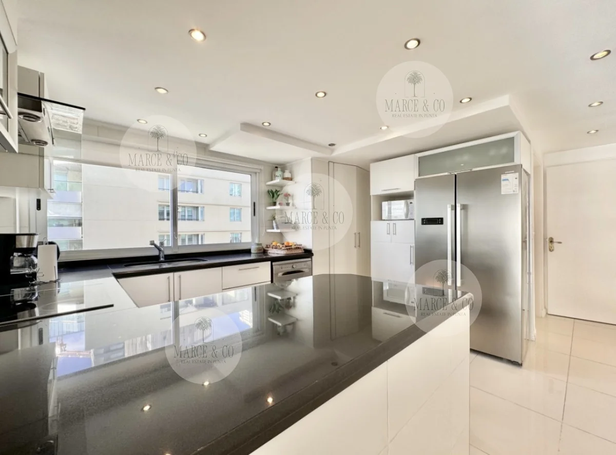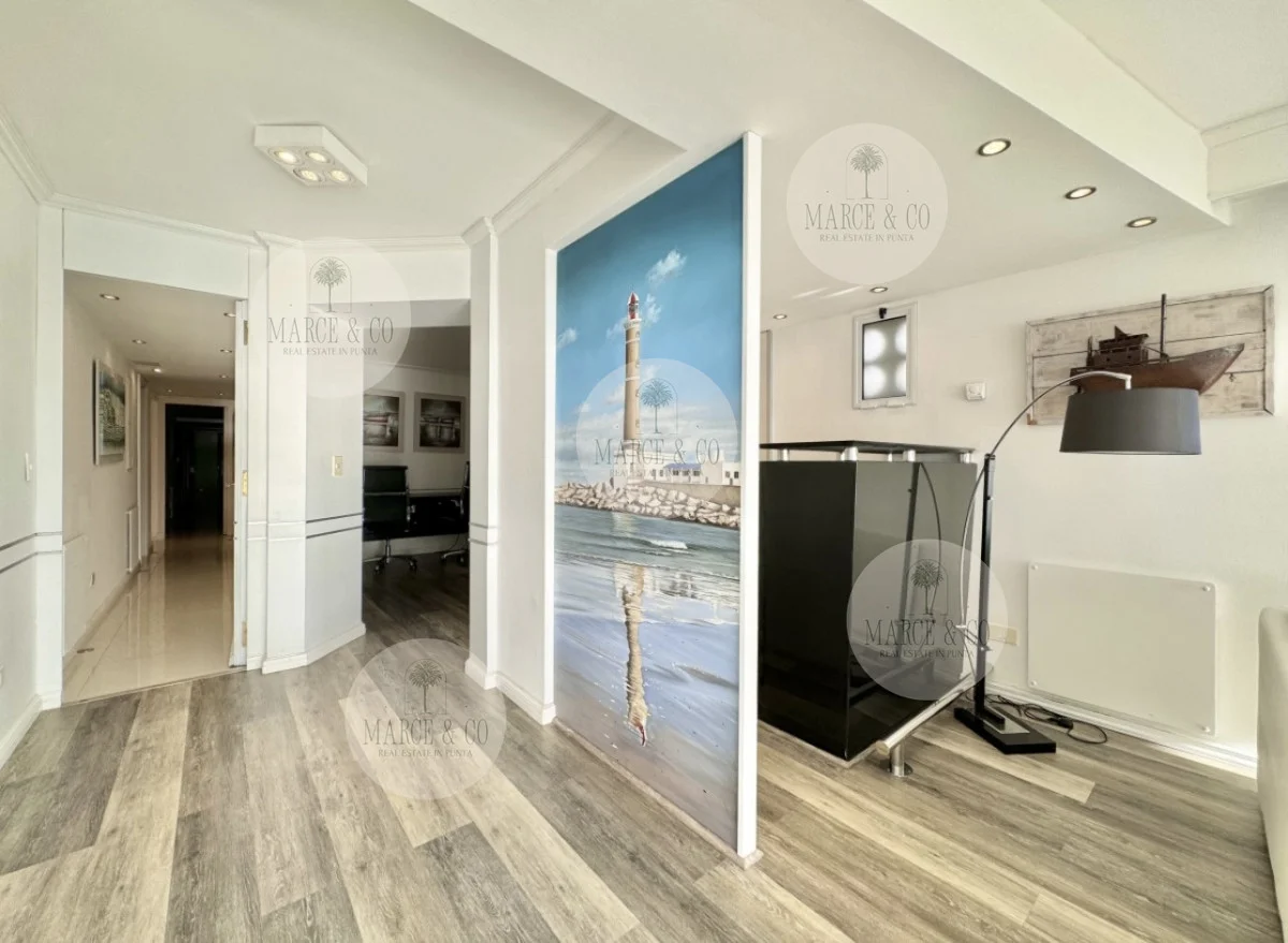 Excelente planta, con amplios espacios y vista al mar. Dispone de seis dormitorios, cinco baños completos, dos suite más toilette de visitas. Espacioso y luminoso living comedor con salida al balcón mirando al horizonte marino y los atardeceres de Playa Mansa. Gran cocina totalmente equipada, con desayunador.