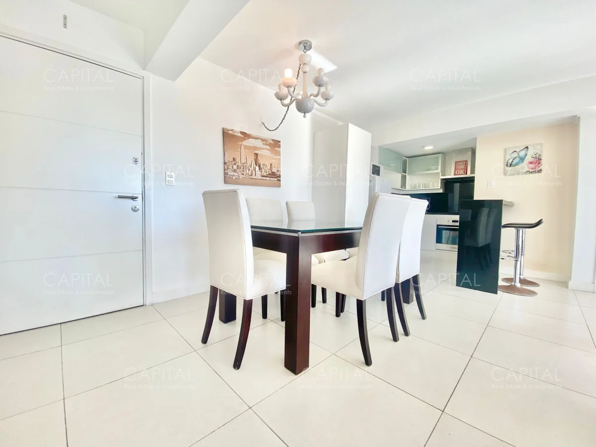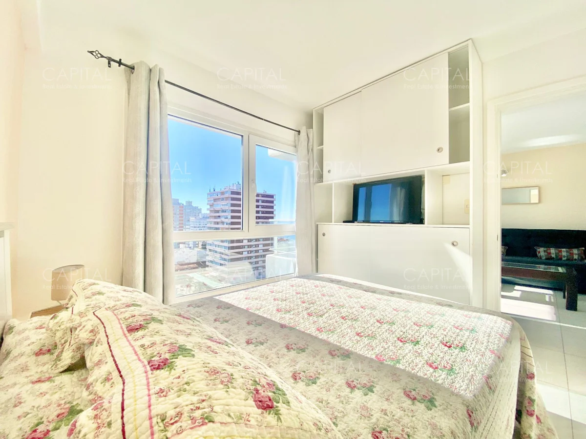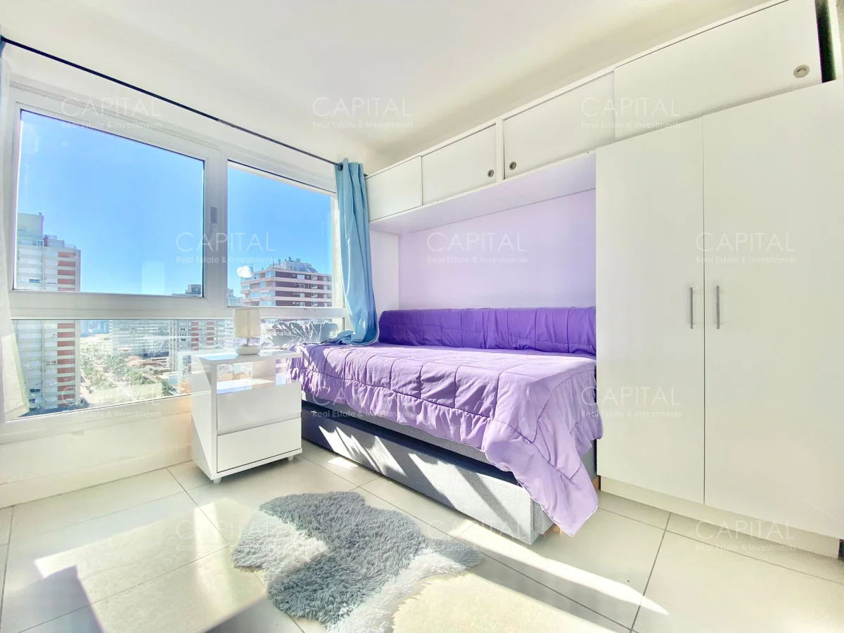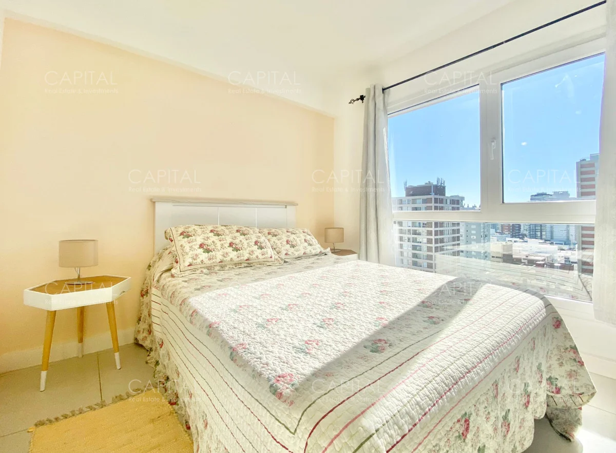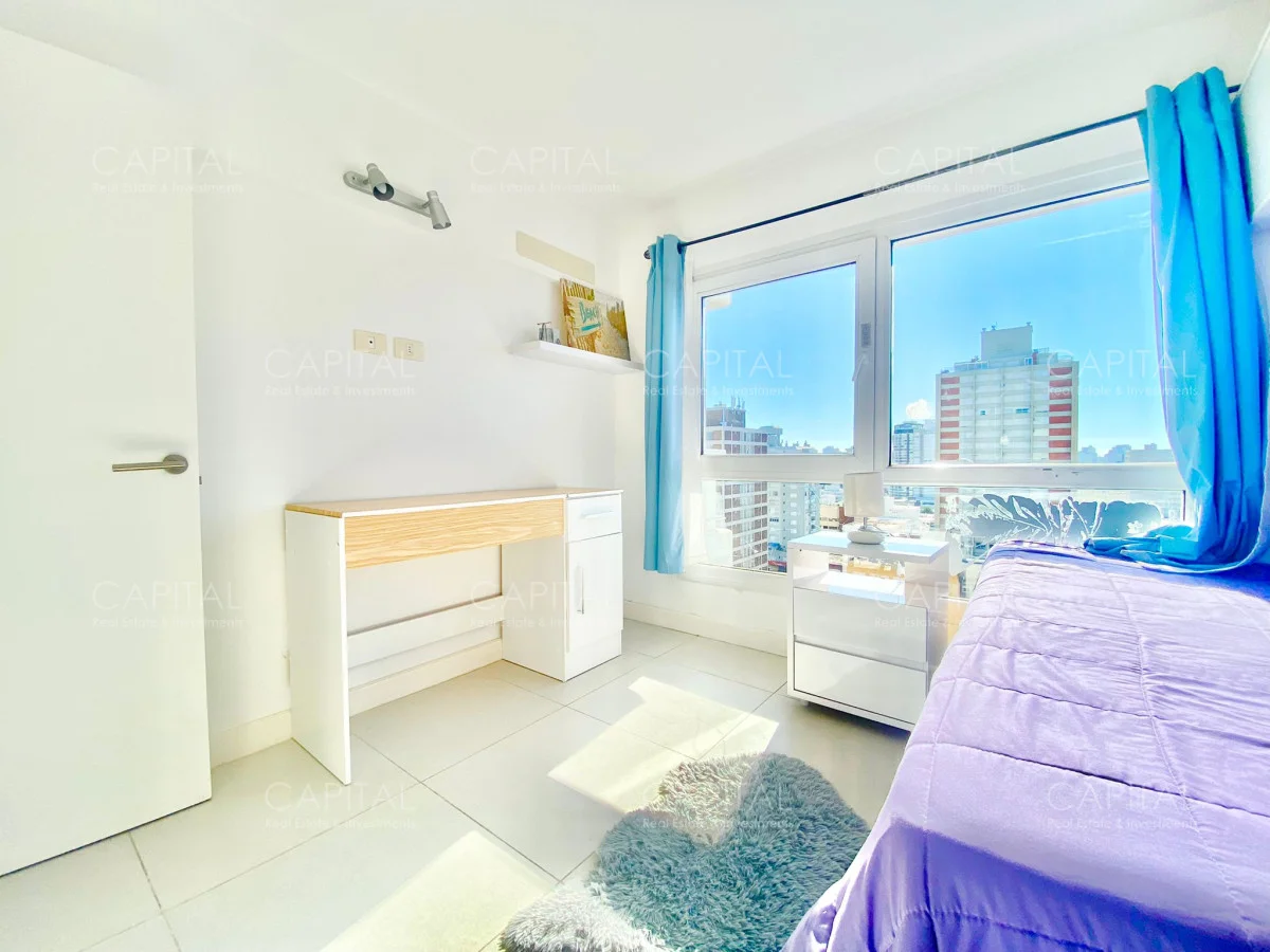 Apartamento de dos dormitorios, principal en suite, baño completo, cocina integrada y amplio living comedor, espacioso luminosos y una increíble vista desde la terraza, en edificio con muy buenos amenities. Ubicado en el Centro de Punta del Este con variedad de servicios y comercios a disposición, un entorno con variedad de espacios naturales, playas y lugares recreativos donde disfrutar al aire libre. Ideal para vivir todo el año!
