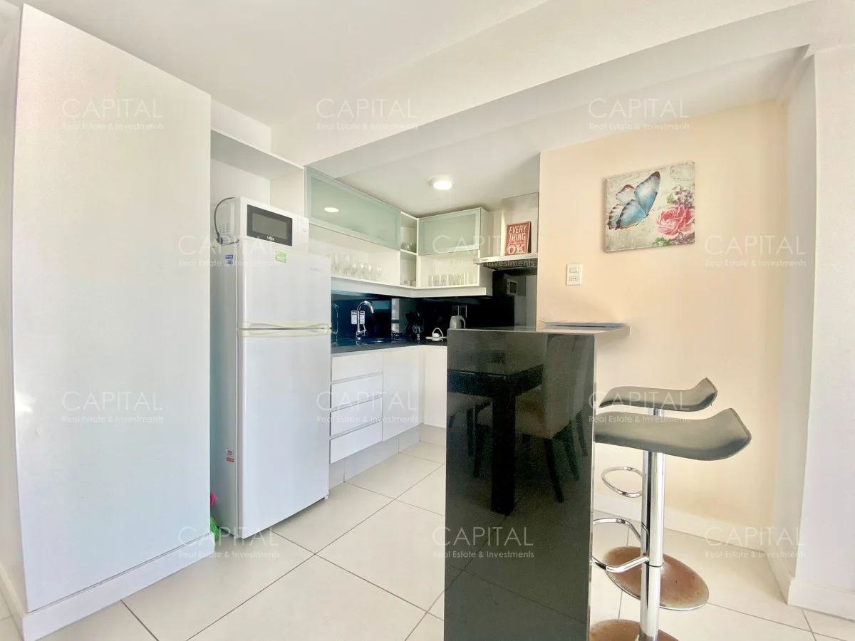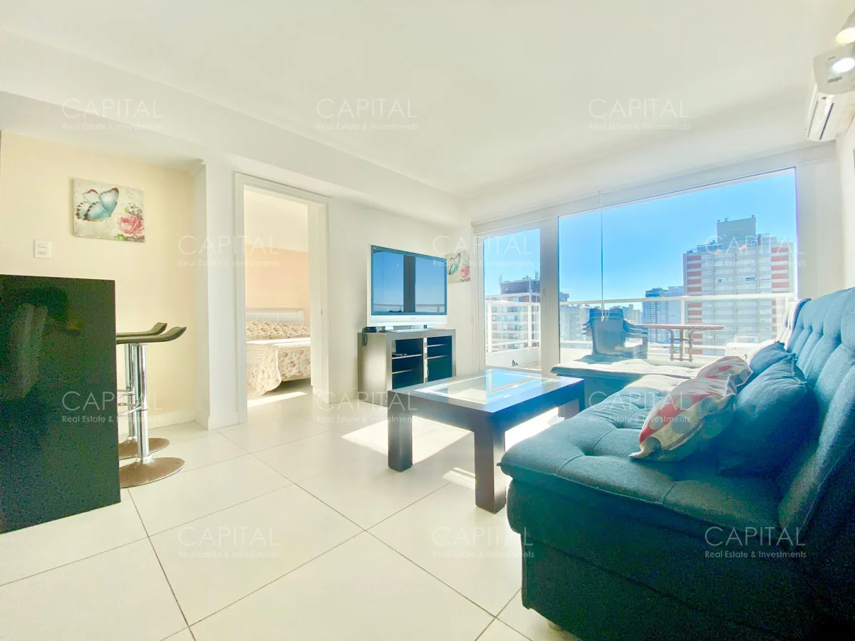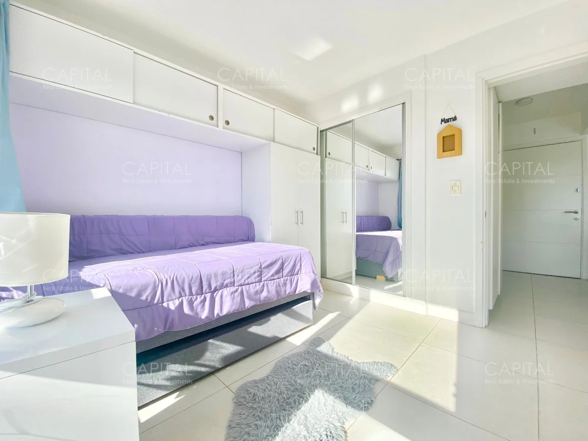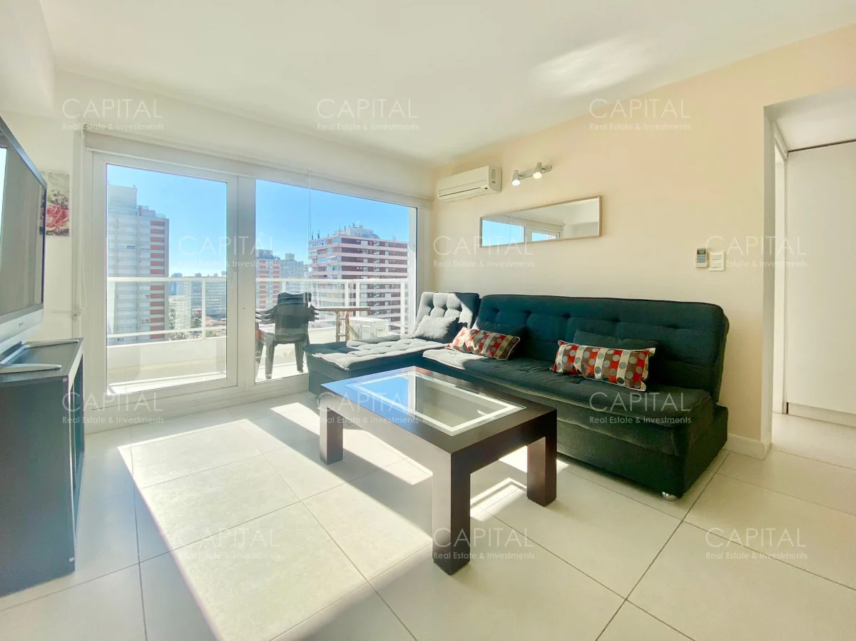 Apartamento de dos dormitorios, principal en suite, baño completo, cocina integrada y amplio living comedor, espacioso luminosos y una increíble vista desde la terraza, en edificio con muy buenos amenities. Ubicado en el Centro de Punta del Este con variedad de servicios y comercios a disposición, un entorno con variedad de espacios naturales, playas y lugares recreativos donde disfrutar al aire libre. Ideal para vivir todo el año!