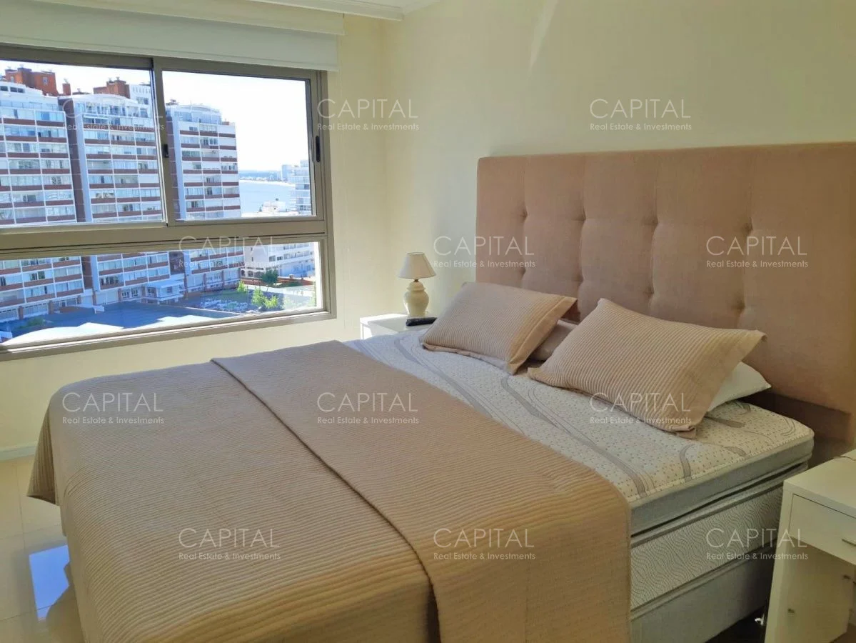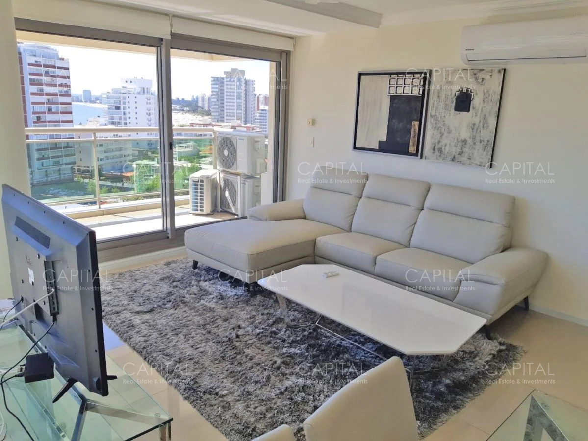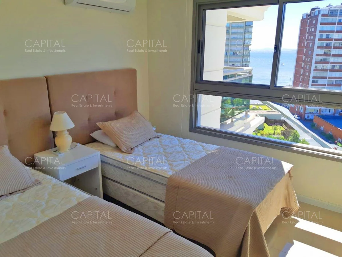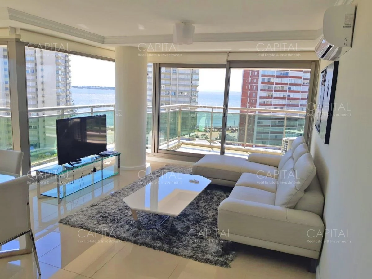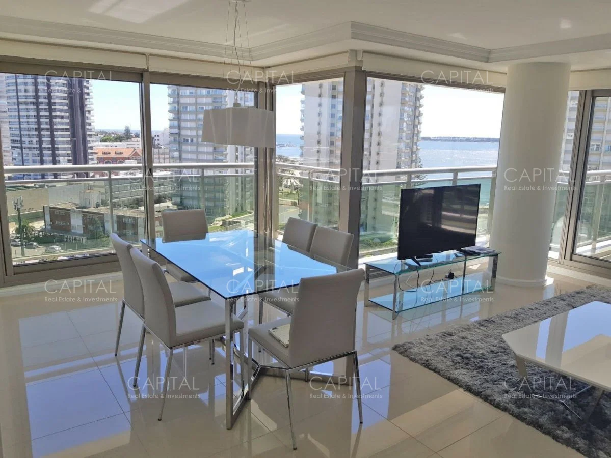 Moderno apartamento en torre con servicios de primer nivel. Estratégicamente ubicado entre Playa Mansa y Brava. Cuenta con dos dormitorios con baños en suite, toilette, living comedor con salida a terraza con vista al Mar. Dispone de garage. Consulte por más información. Referencia Interna : Tera-34953