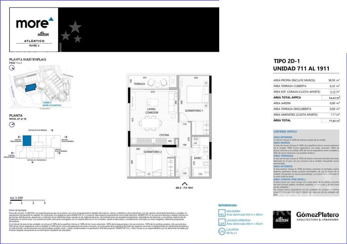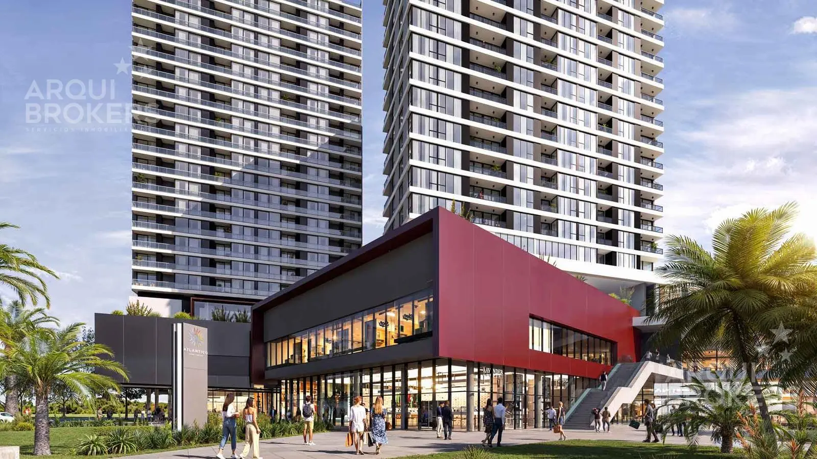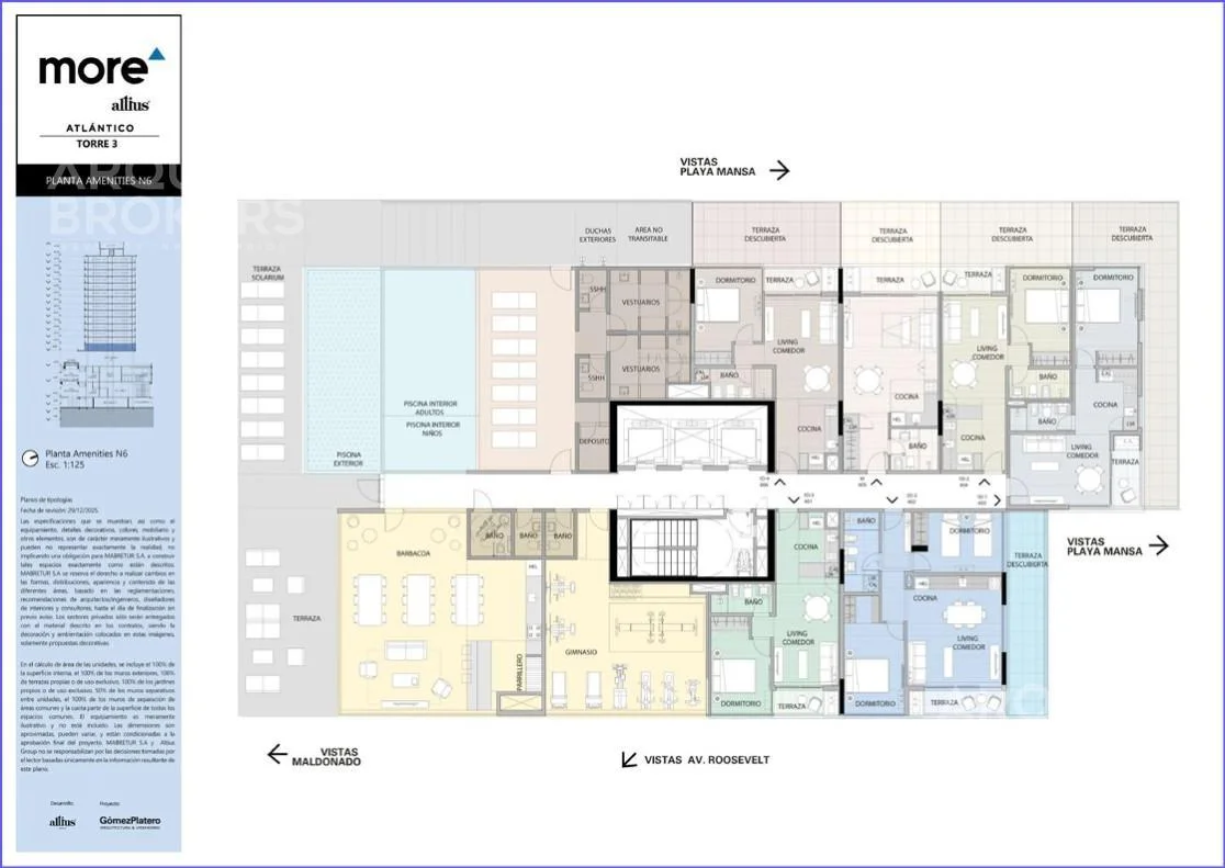 Amenities: vestuarios, solárium, piscina exterior, piscina interior, pet garden, lobby recepción, livings exteriores, kids club, juegos exteriores, gimnasio, barbacoa, salón mirador en rooftop.