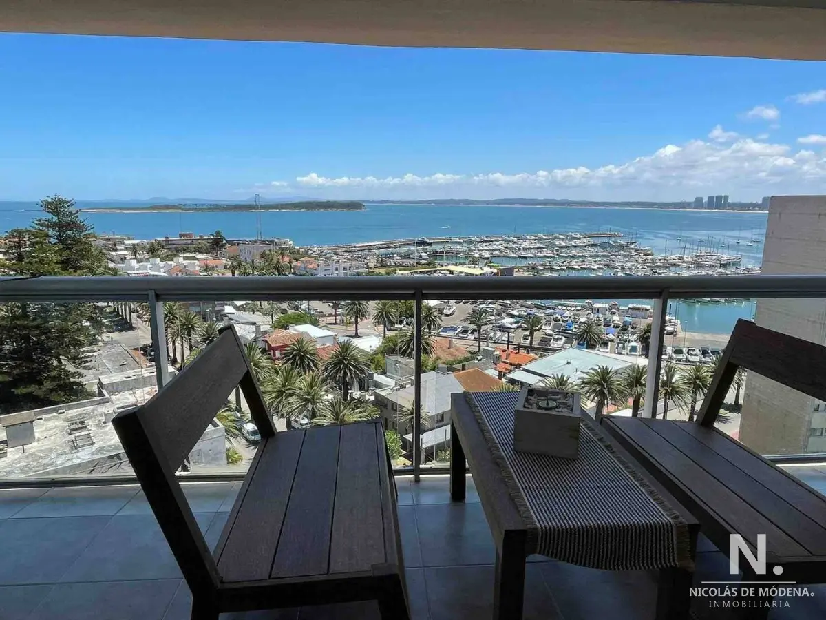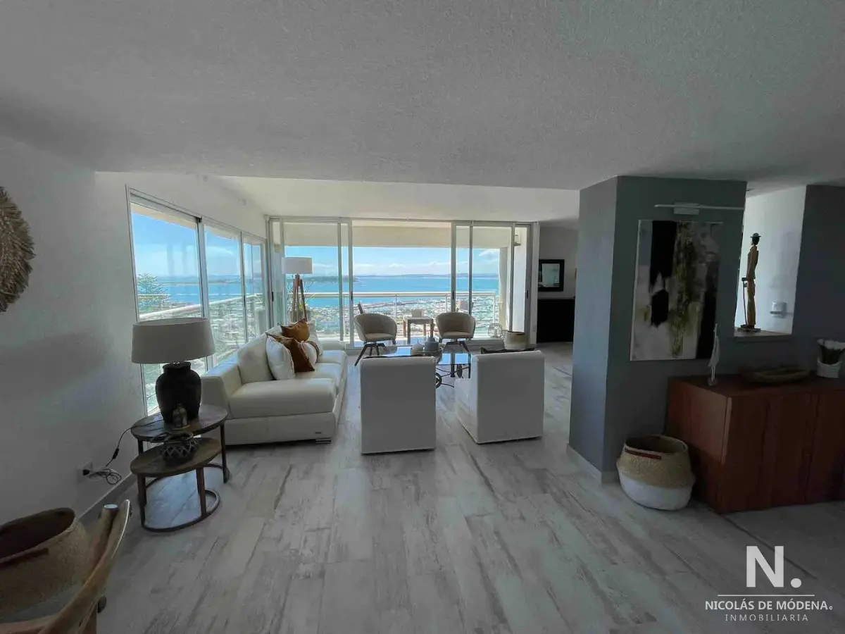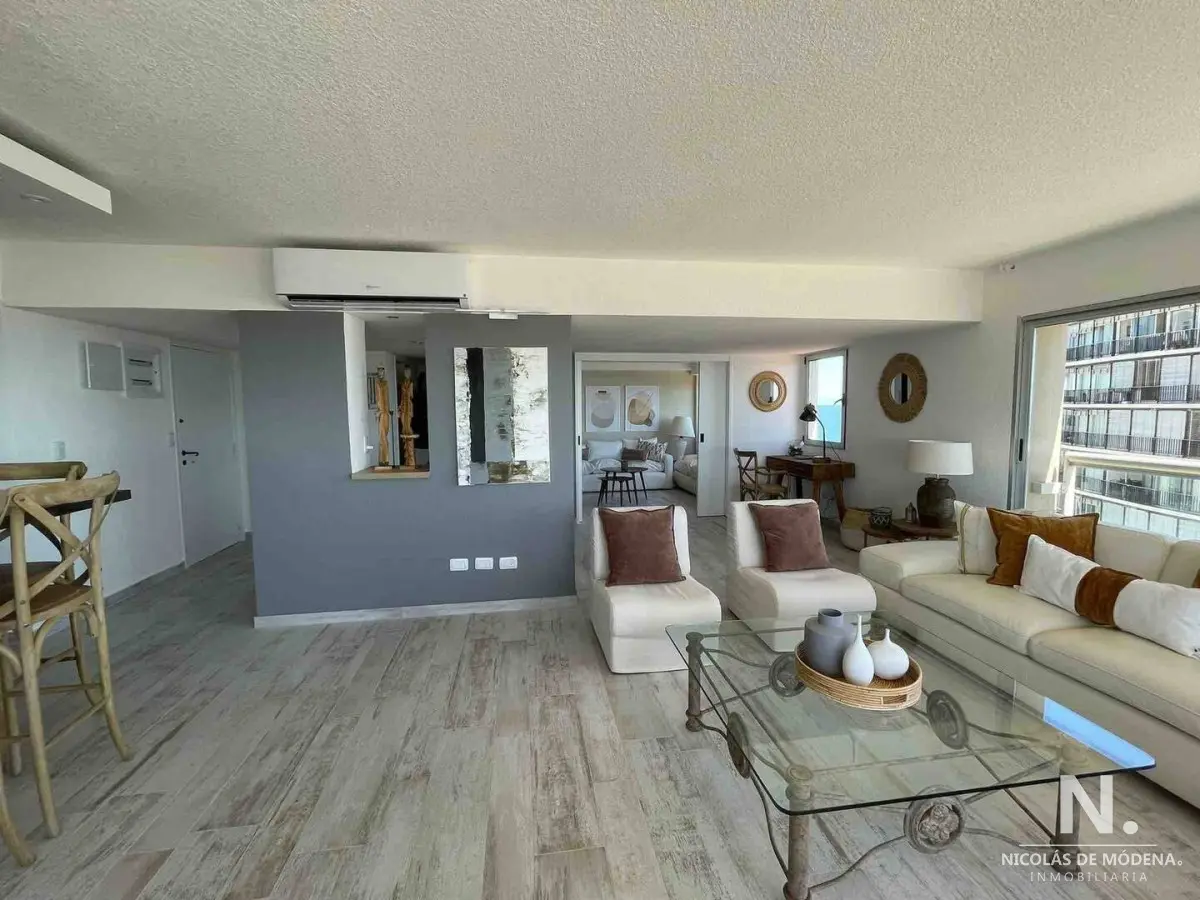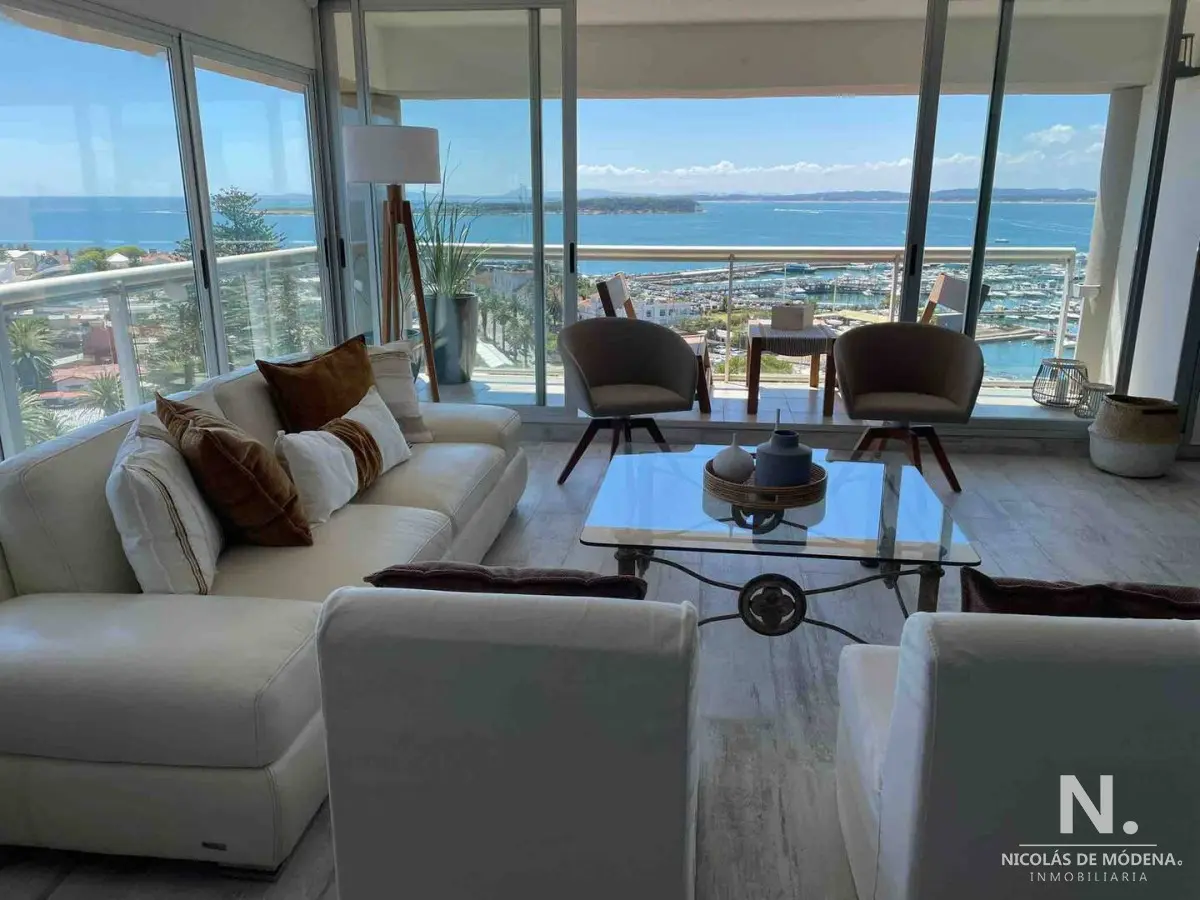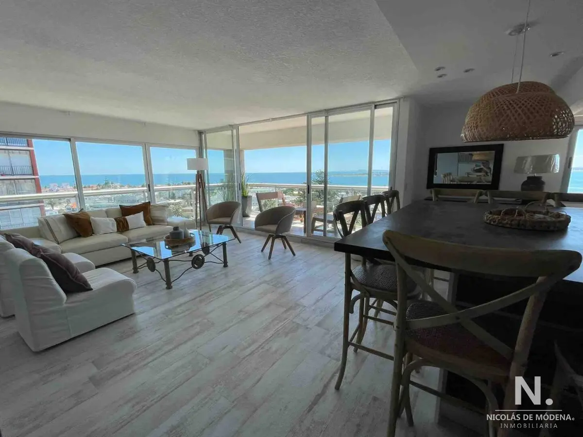 Apartamento amplio y luminoso, cocina integrada al living comedor, terraza con vista a el Puerto de Punta del Este y Playa Mansa, tres dormitorios y tres baños.