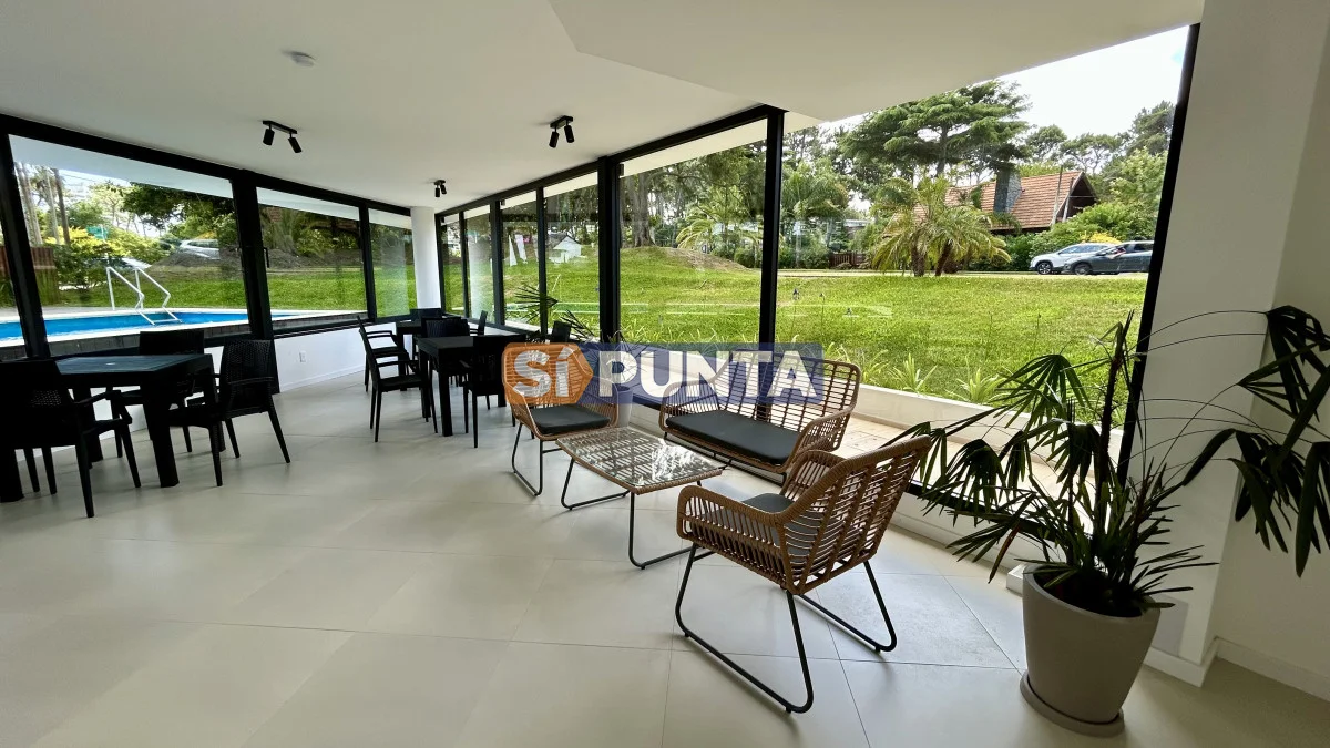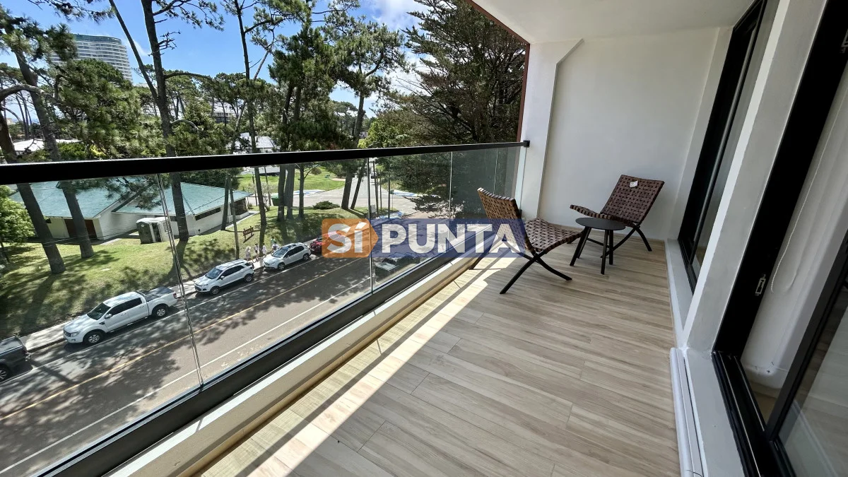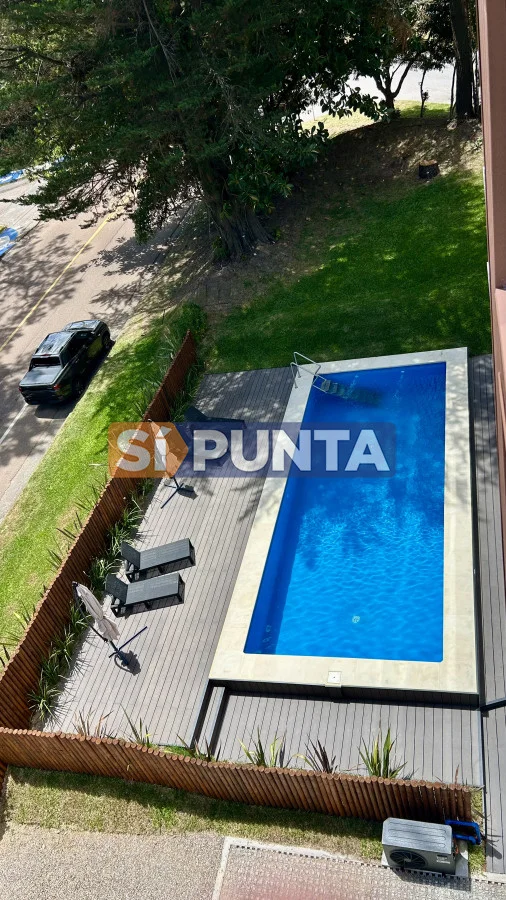 La unidad posee cocina integrada con barra, un dormitorio, un baño, cochera exterior y amplio balcón. Ubicado a 2 cuadras del mar, equipado de primera en edificio de solo 18 apartamentos, con ascensor, portero 8 horas y amplia piscina templada con bomba de calor.