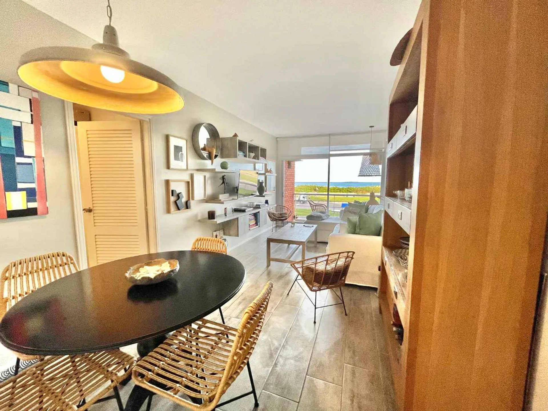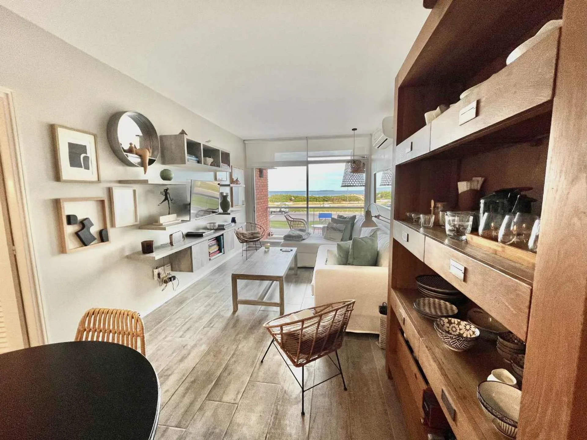 La unidad cuenta con living comedor con acceso al balcón con vista directa al mar, cocina integrada de concepto moderno, 2 dormitorios y 2 baños completos. Reciclado con muy buen gusto, combina funcionalidad y confort, con ambientes luminosos y una distribución práctica.