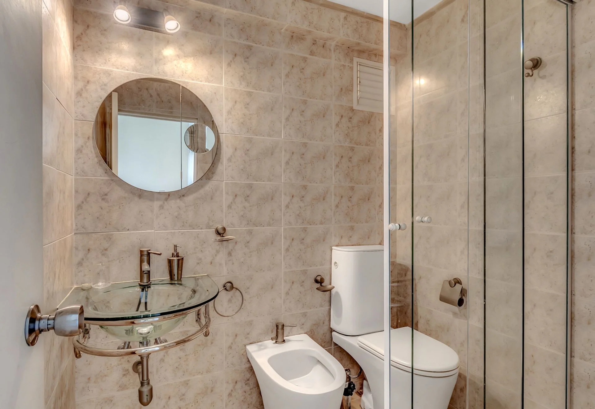 Este apartamento se encuentra totalmente reciclado y actualizado: se incorporaron as terrazas hacia las zonas cubiertas, ganando así bastantes metros útiles, se le agregó aire acondicionado en todos los ambientes, y se actualizaron todas las aberturas y terminaciones originales del apartamento.