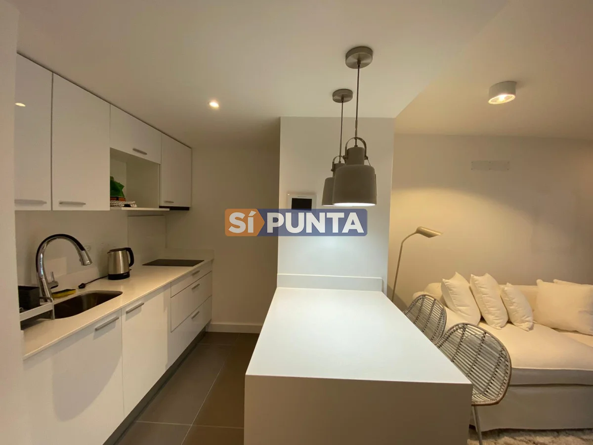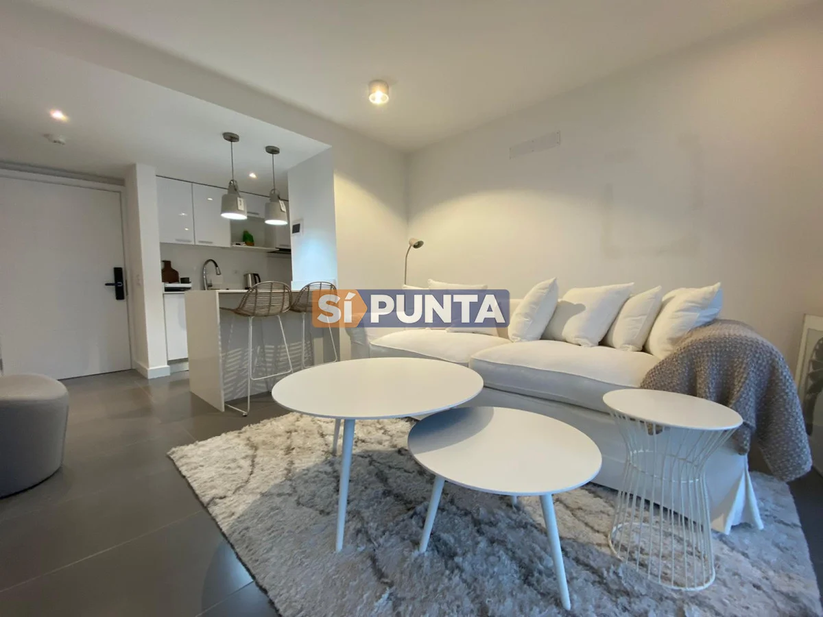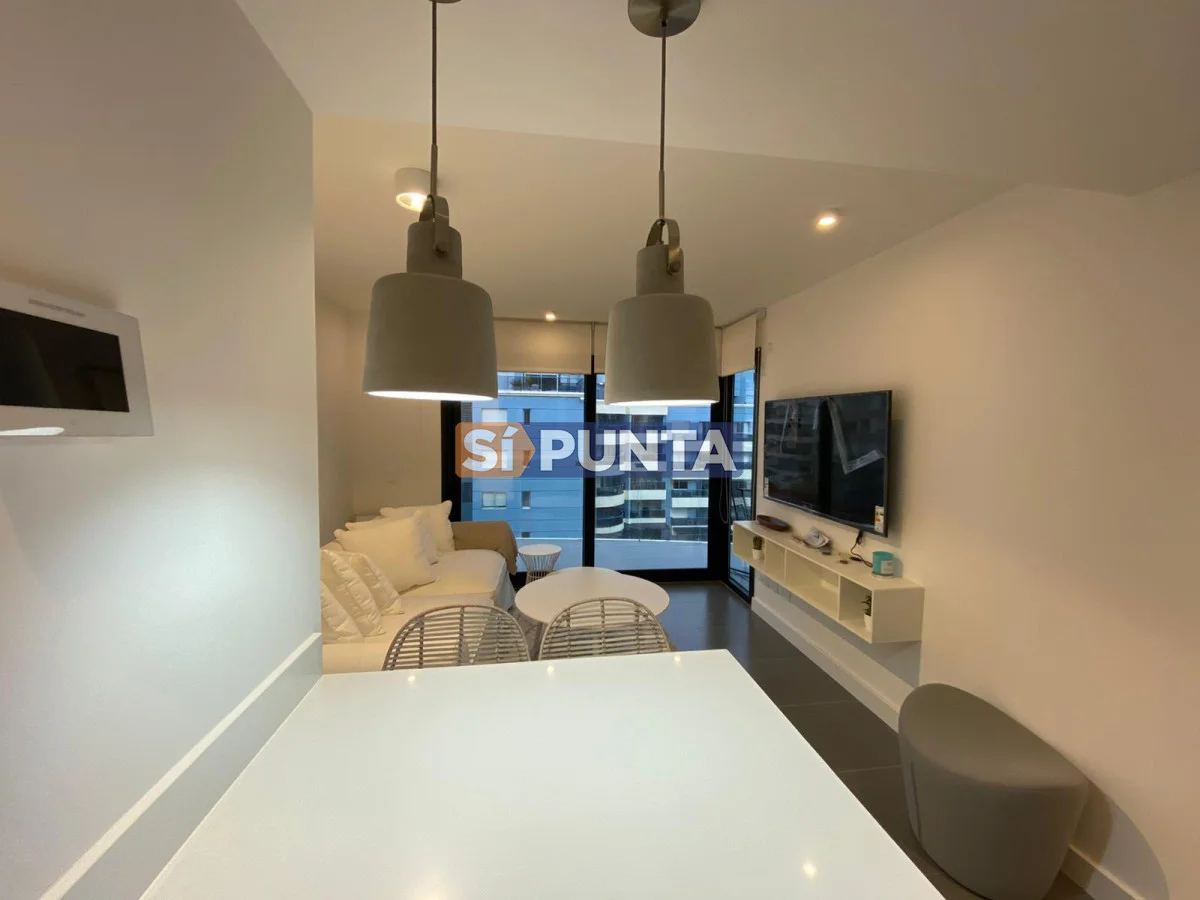Apartamento en edificio moderno. Buenas dimensiones. Cuenta con una linda vista al mar. Comodidades: - Living - comedor con cocina integrada - 1 dormitorio - 1 baño - Garaje Amenities : Recepción - Piscina abierta - Ser. Mucama - Piscina Climatizada cerrada - Referencia Interna : Tera-5175