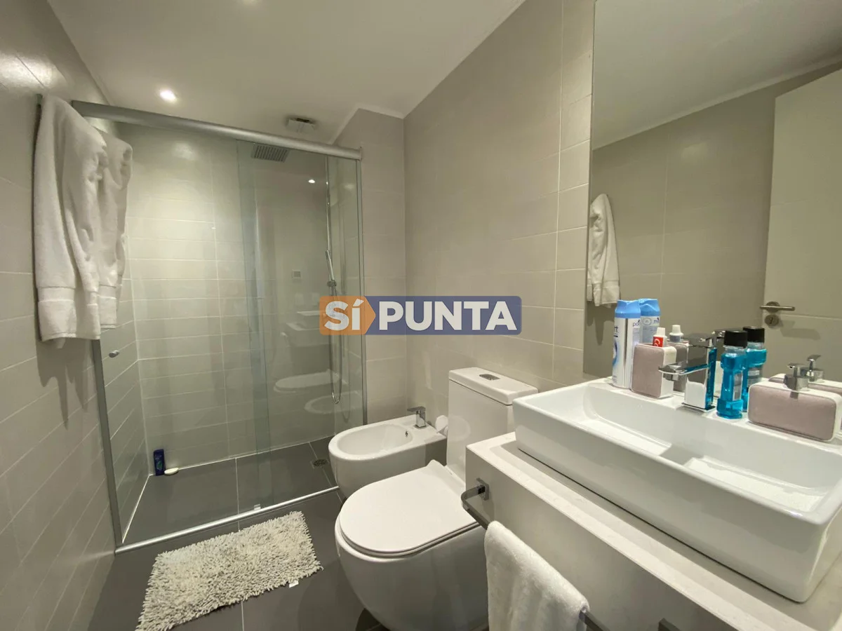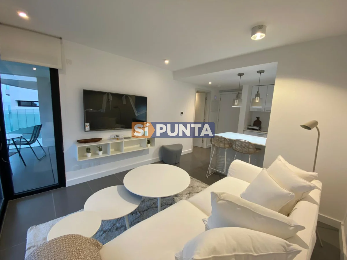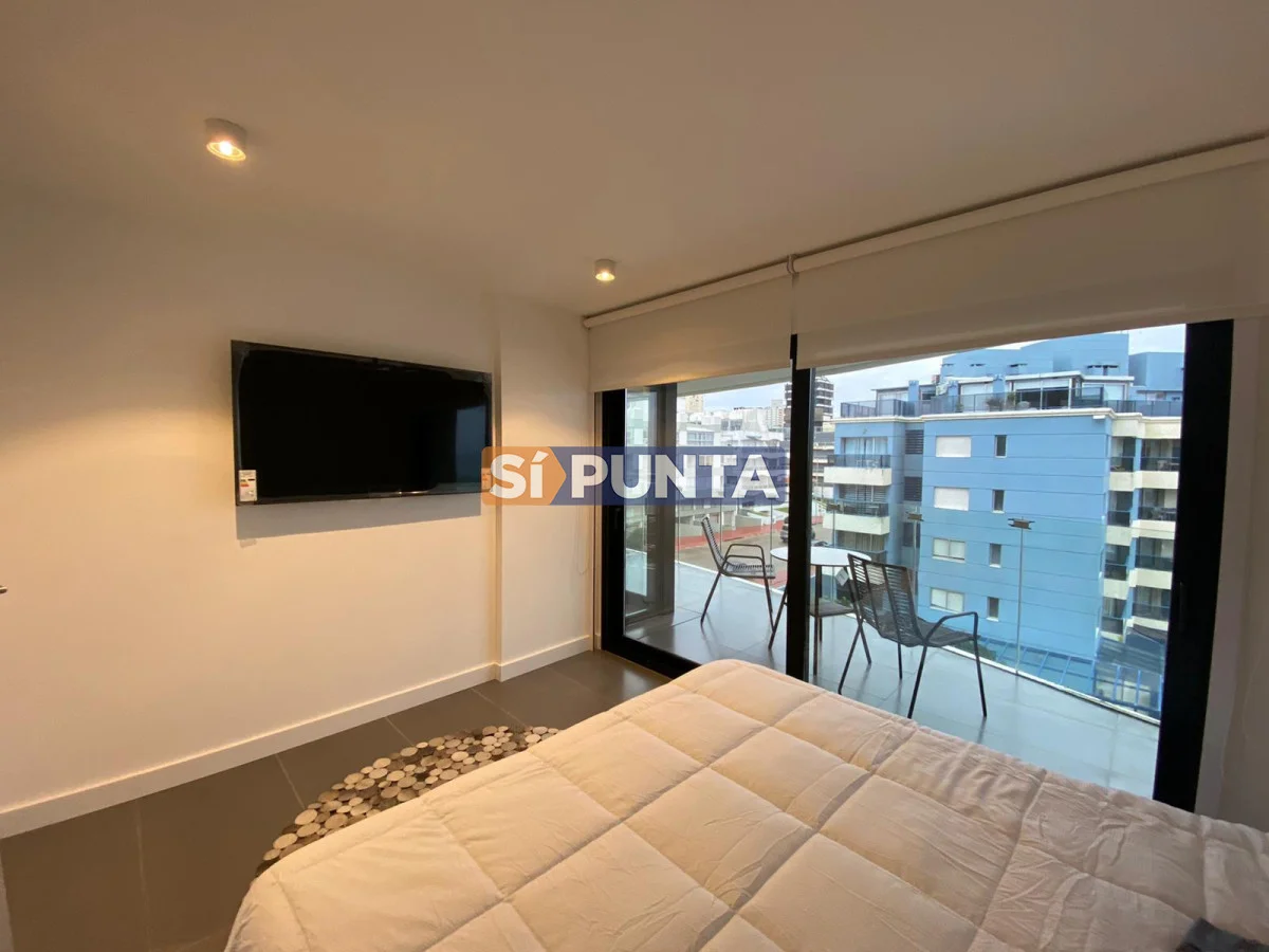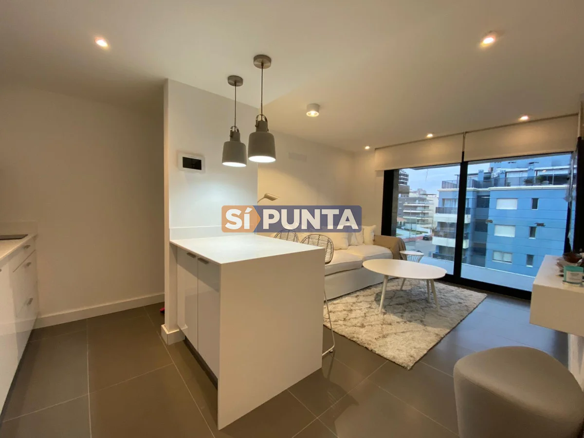 Apartamento en edificio moderno. Buenas dimensiones. Cuenta con una linda vista al mar. Comodidades: - Living - comedor con cocina integrada - 1 dormitorio - 1 baño - Garaje Amenities : Recepción - Piscina abierta - Ser. Mucama - Piscina Climatizada cerrada - Referencia Interna : Tera-5175