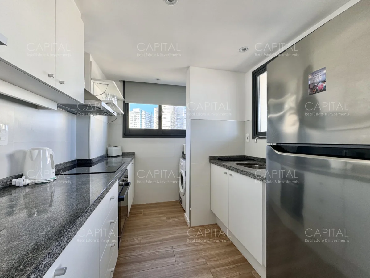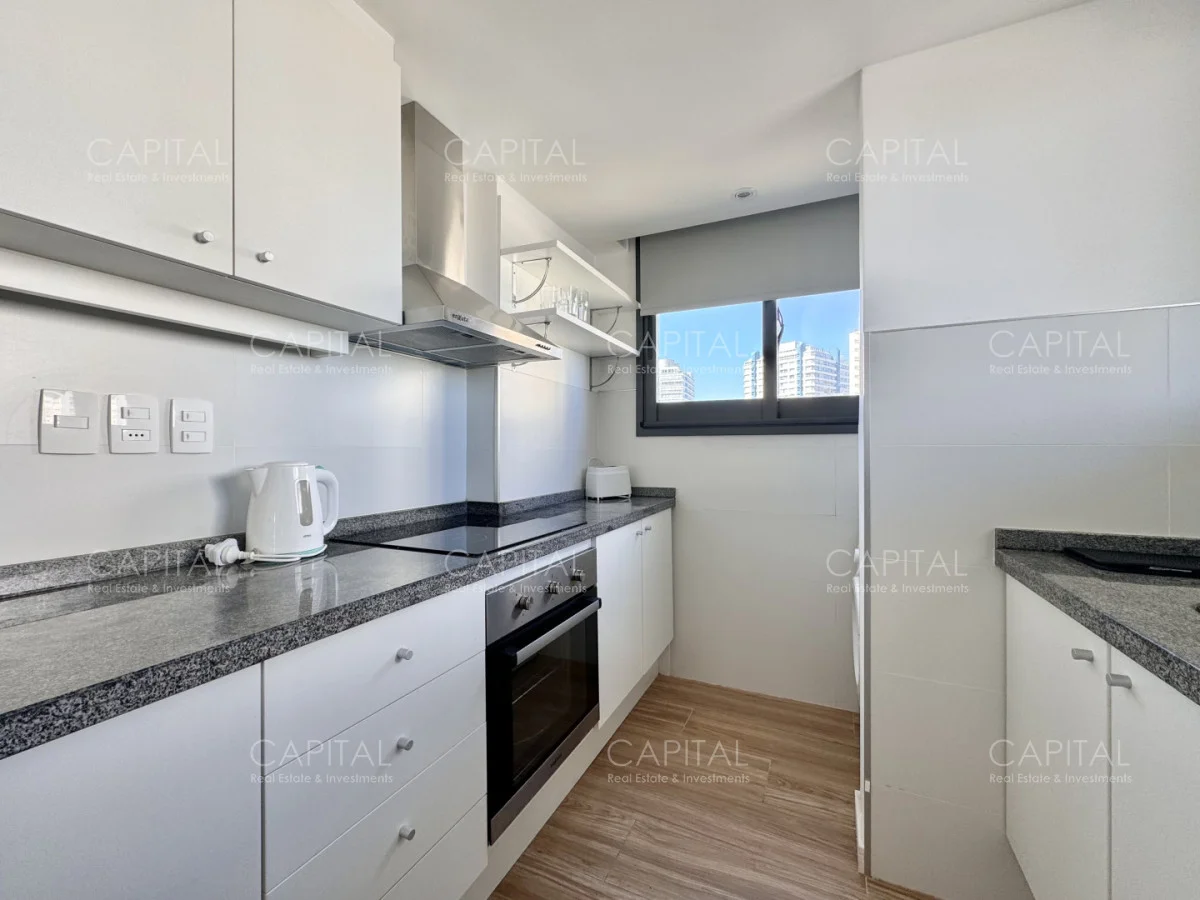 Unidad de 2 dormitorios y 2 baños a estrenar de excelente calidad constructiva, muy luminosas debido a su condición exenta y orientación ideal. Dormitorio principal en suite. Cocina integrada al living comedor, bien equipada.