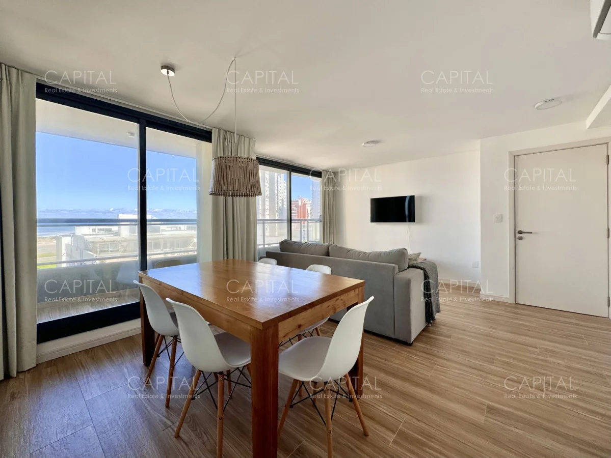 Balcon con excelente vista al mar brava y mansa , terminaciones y accesorios de primera calidad, carpintería en madera laminada, muebles aéreos y bajo mesada en cocina, muebles bajo mesada en baño, aire acondicionado en todos los ambientes. Revestimiento en porcelanas importados. Aberturas exteriores en aluminio anodizado natural.