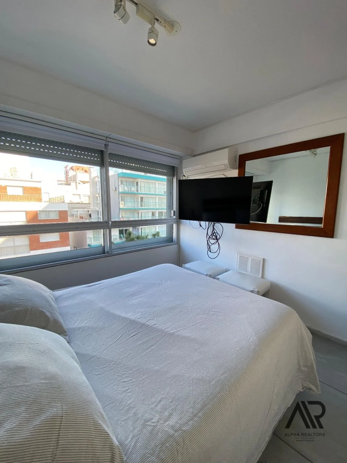 Apartamento de 1 dormitorio en la emblemática Península de Punta del Este, a pasos de Gorlero y del mar. Ubicado en un edificio de sólida construcción, ofrece un diseño funcional con amplio living comedor, cocina definida (reciclada) y un encantador balcón. Totalmente amueblado y equipado con aire acondicionado, calefón y placares en dormitorio y cocina, brinda comodidad y practicidad.